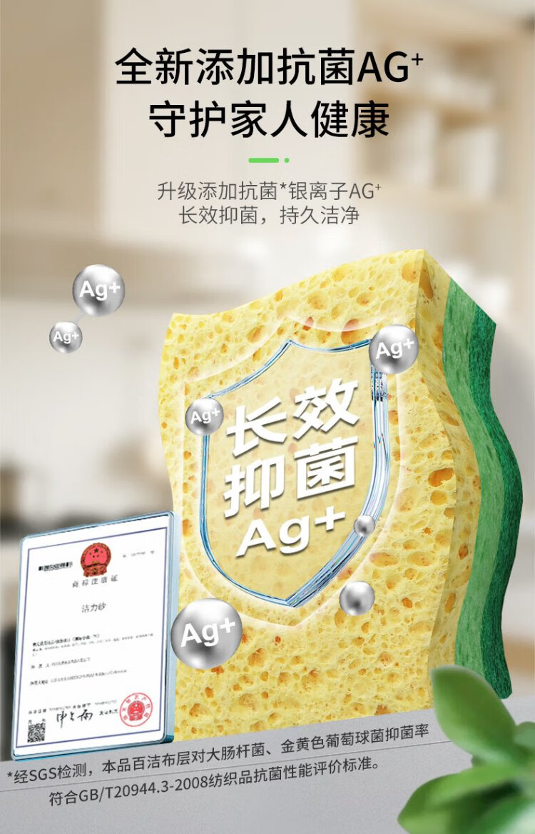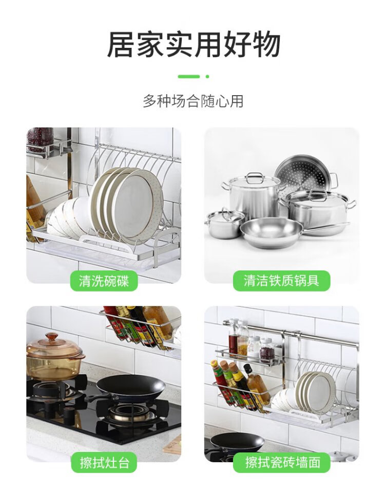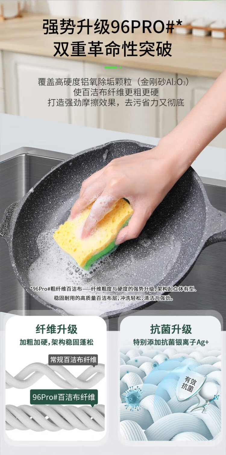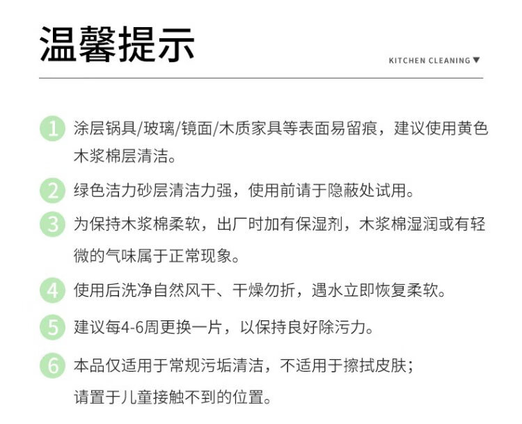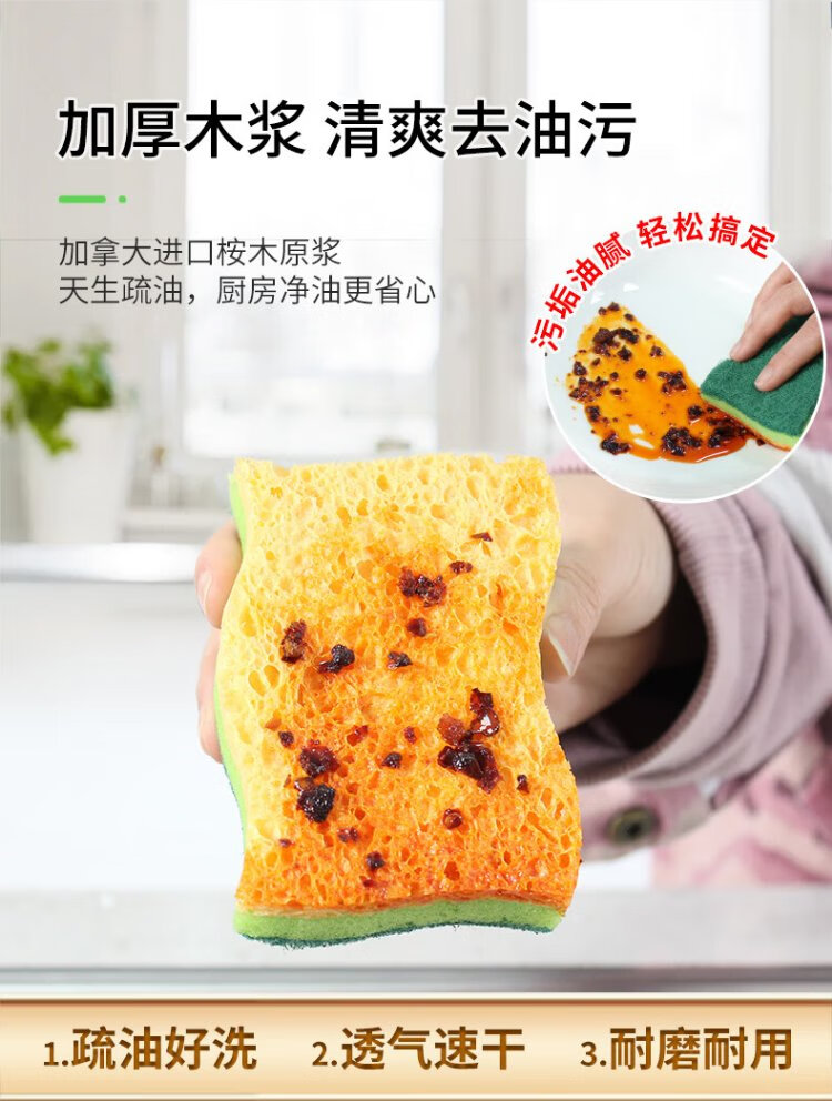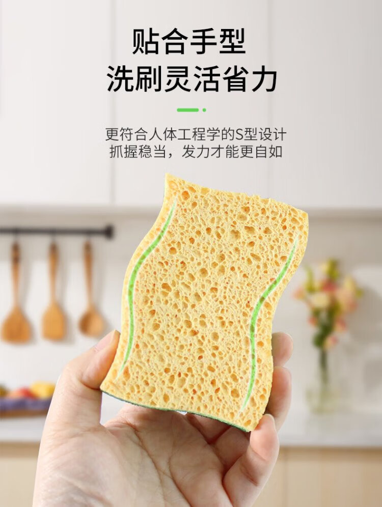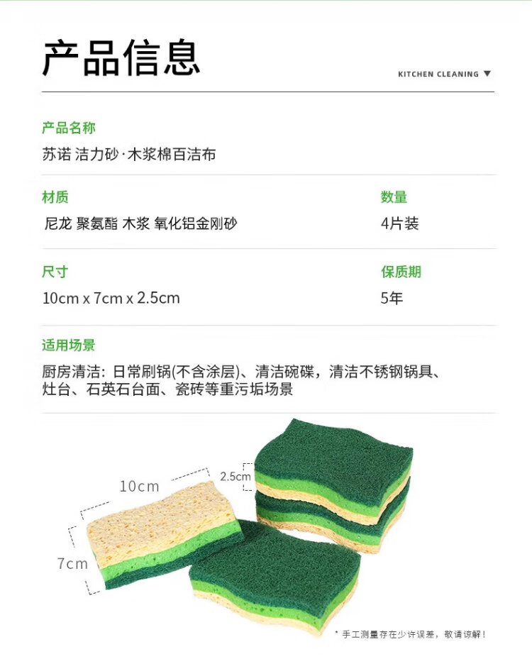 Sunuo wood pulp cotton dishwashing wipe 10*7*2.8cm*4 pieces of scouring pad double-effect degreasing kitchen dishwashing sponge rag