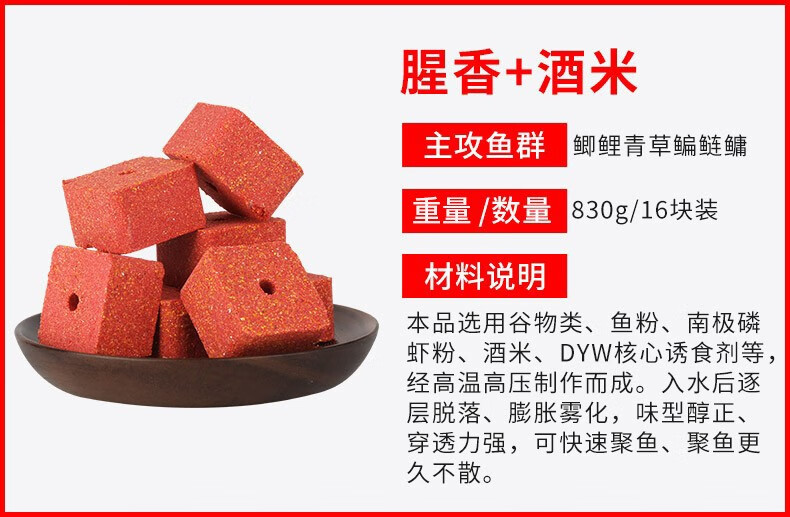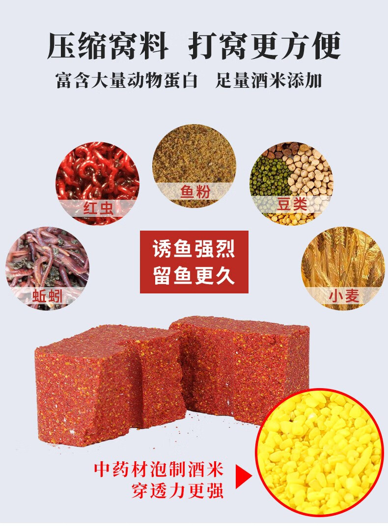 Fishing King compressed puffed nest material fish bait crucian carp and grass carp nest material square bait fish food bran cake fishy smell + wine rice