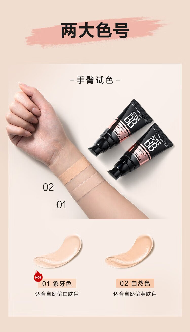 Maybelline Big Concealer BB Cream Concealer Brightens Skin Nude Makeup Cream Foundation 2 Pack Ivory *2 Birthday Gift
