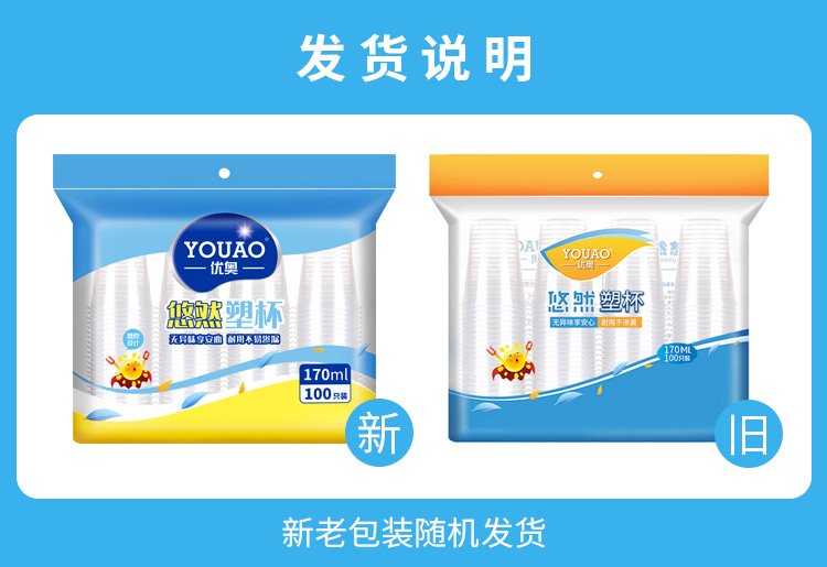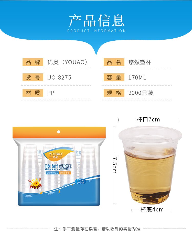 Youao disposable cups, plastic cups, water cups, 170ml*2000 pieces, full box, aviation cups, plastic cups, thickened