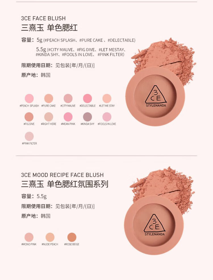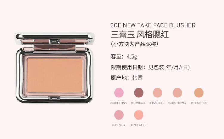 3ce single color blush #NUDEPEACH nude beige 5.5g milk apricot tone contour shrinking color birthday gift for girlfriend