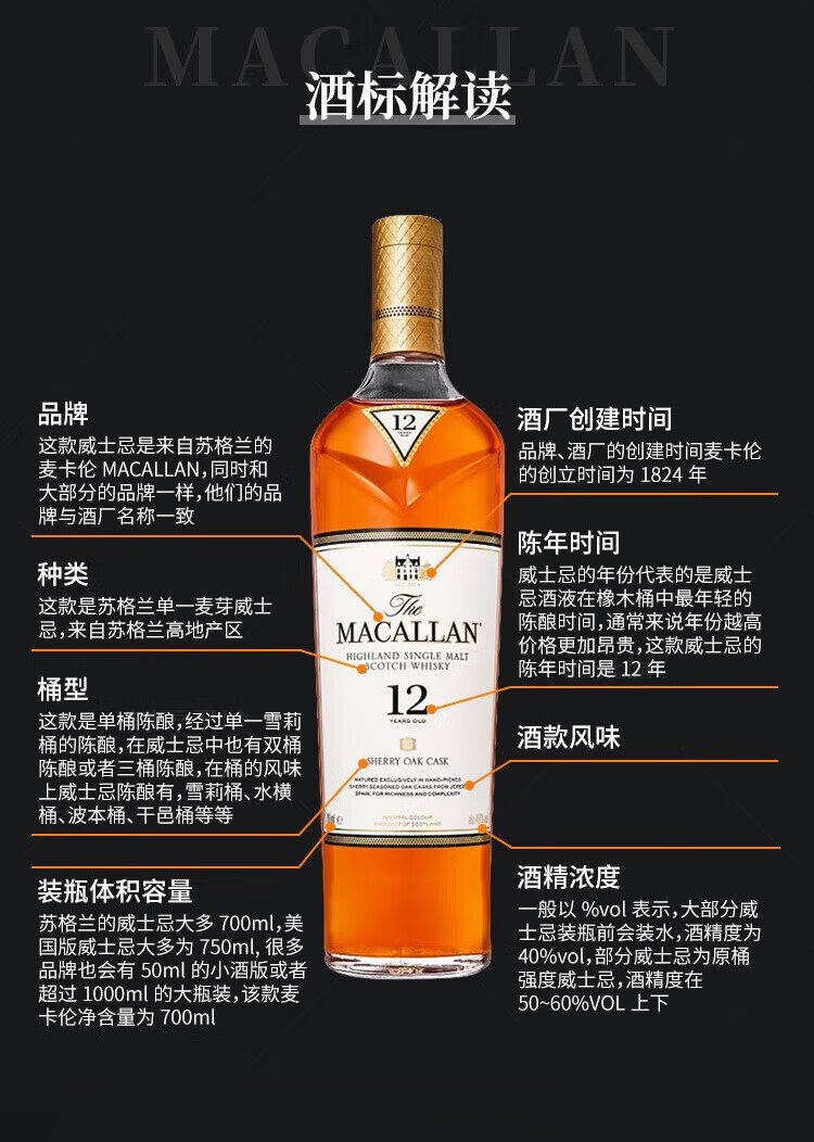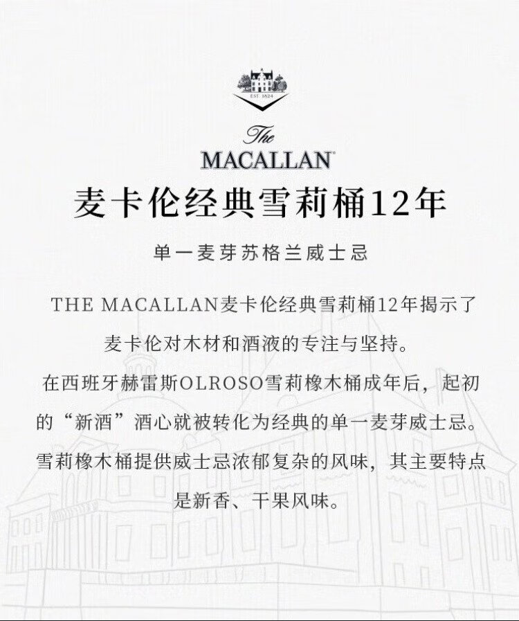 Macallan 12-year sherry cask single malt whiskey 700ml imported wine gift box