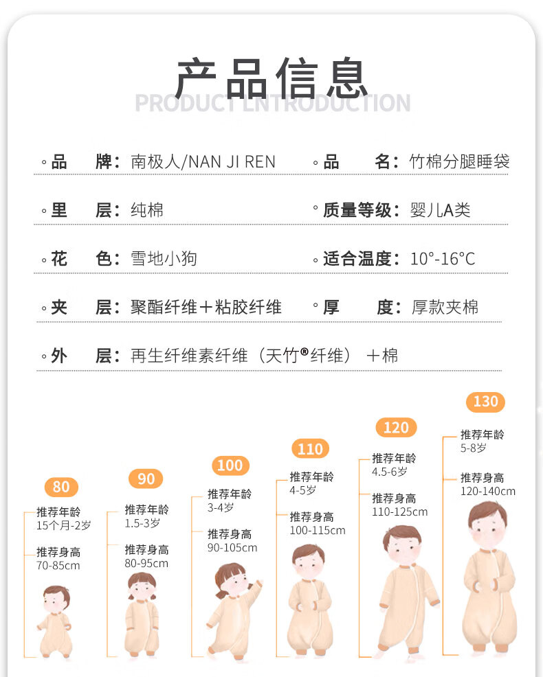 Antarctic Baby Split Leg Constant Temperature Sleeping Bag Autumn and Winter Large Children Anti-Kick Quilt Baby Home Clothes Bamboo Cotton Pajamas 120 Sizes