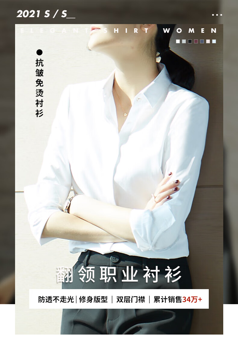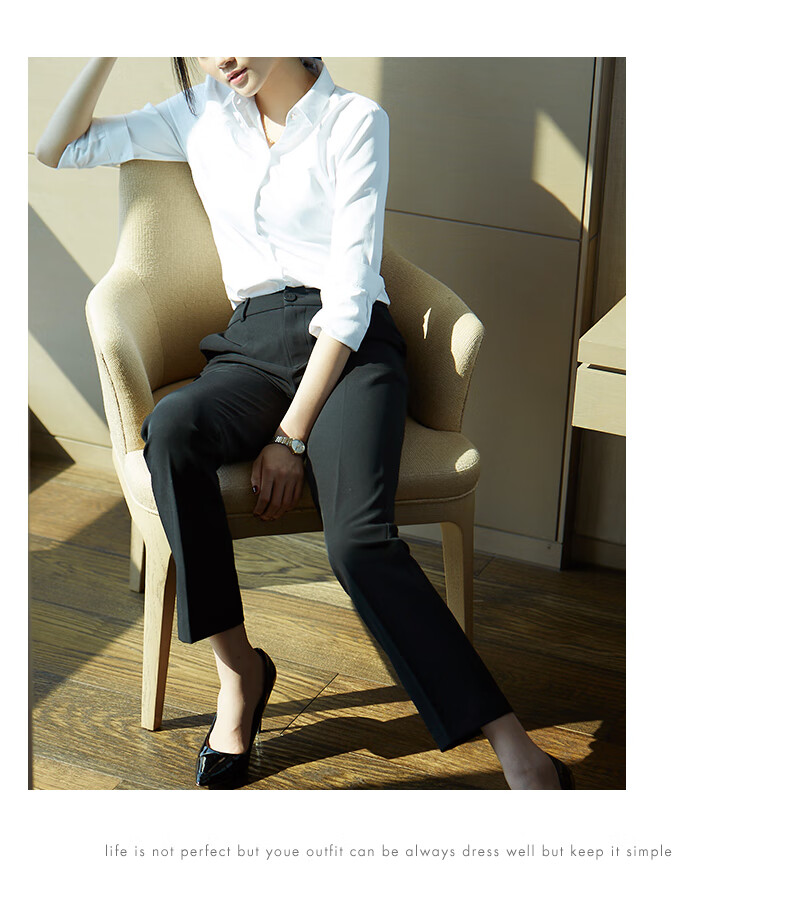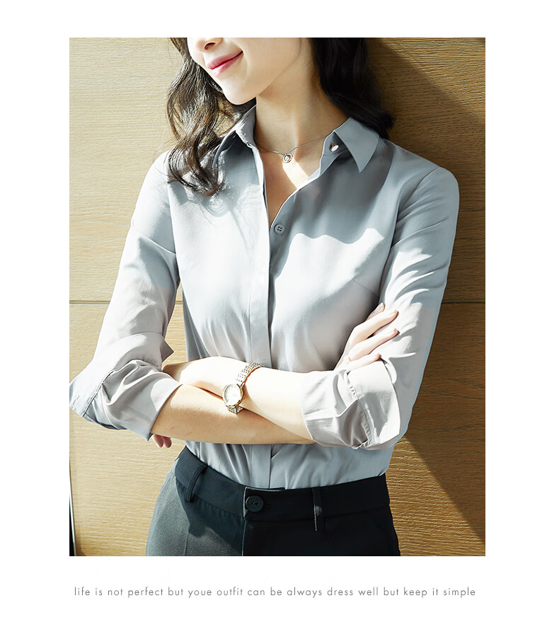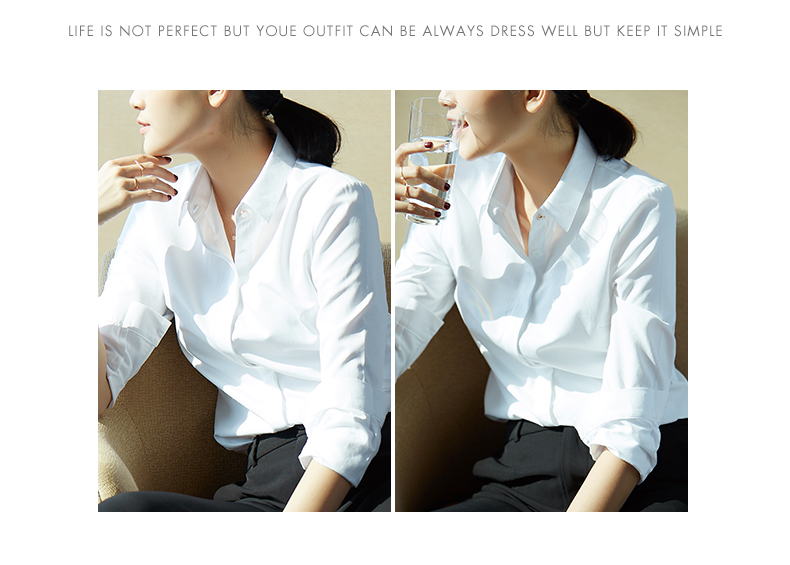 Quehou white shirt women's professional long-sleeved fashionable formal design niche work clothes white M