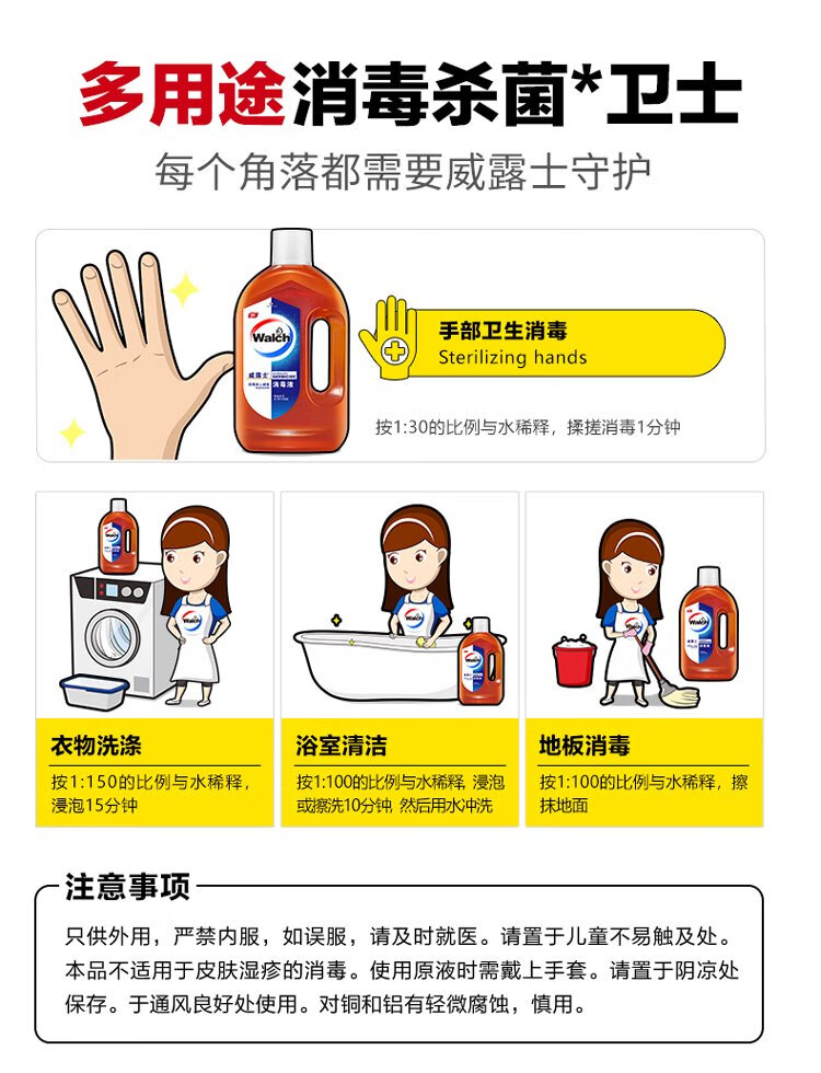 Walch Disinfectant 1.2L Clothing Sterilization Liquid Home Environment Pet Sterilization Non-84 Alcohol Disinfectant Flu