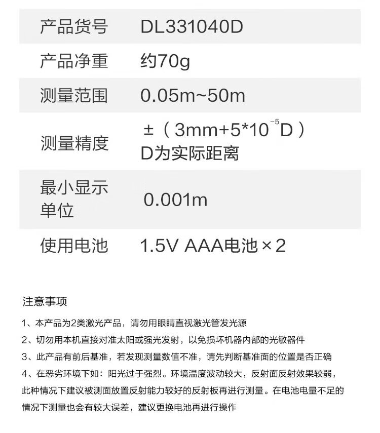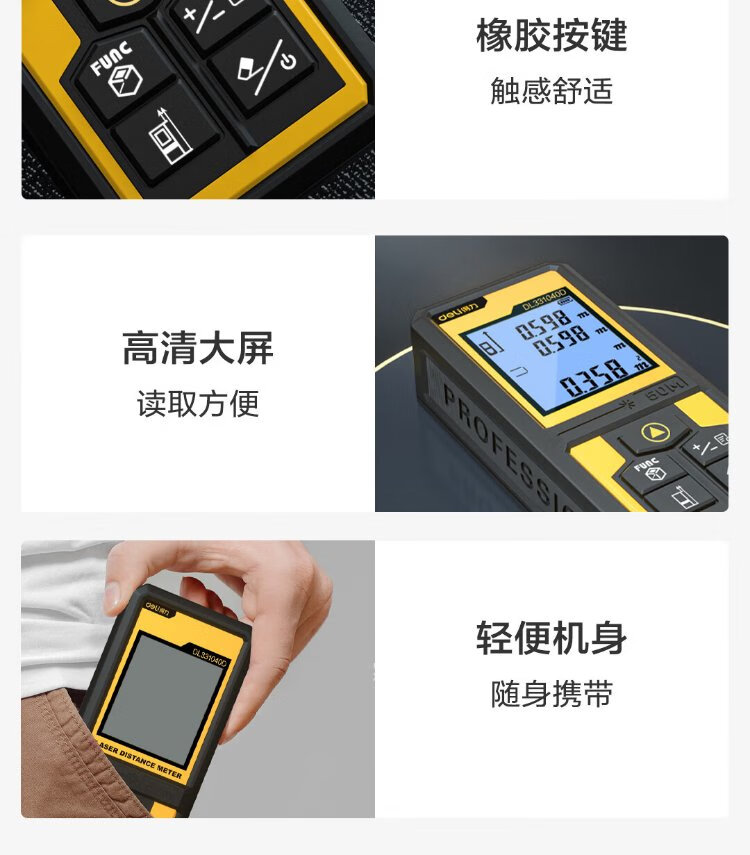 Deli laser range finder high-precision mini electronic ruler infrared home measurement and decoration real-time distance measurement 50m
