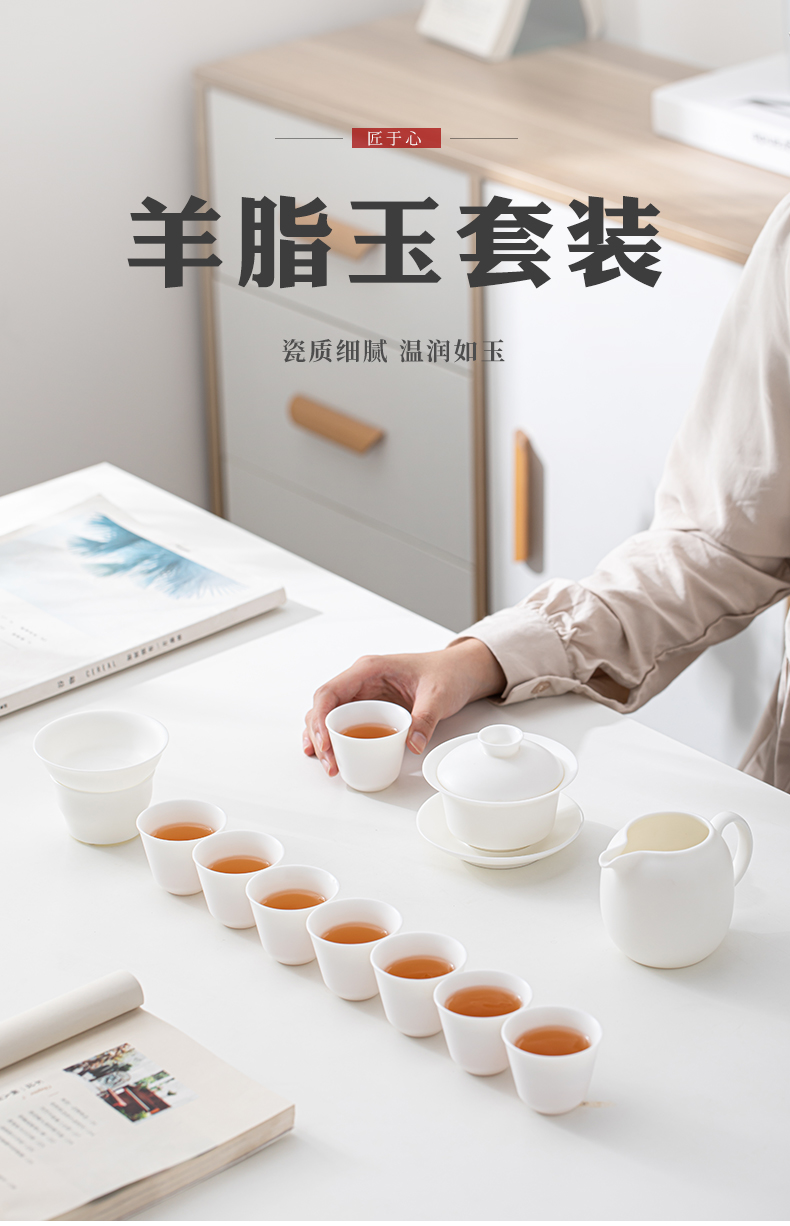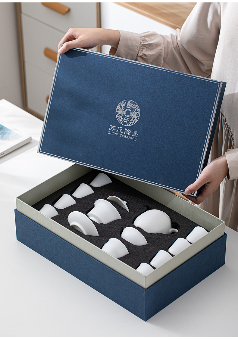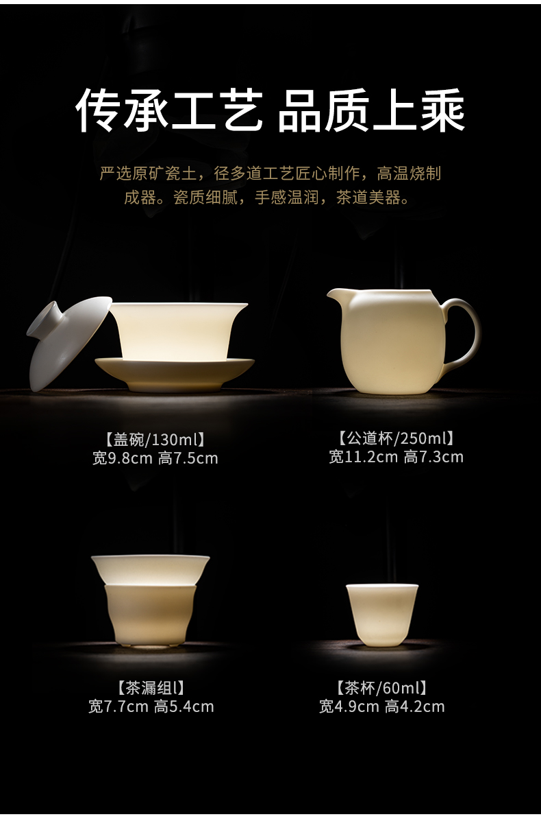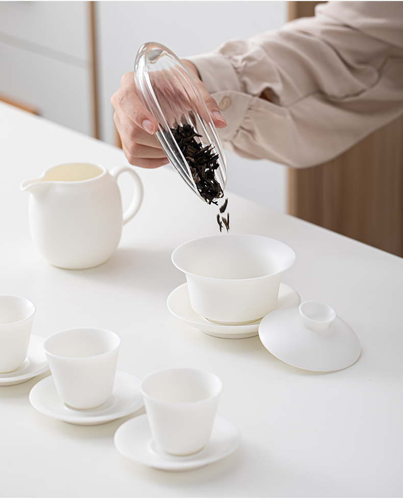 SUSHI CERAMICS plain-fired white porcelain Kung Fu tea set Dehua China white gift ceramic tea set tea cup tea cover J0444