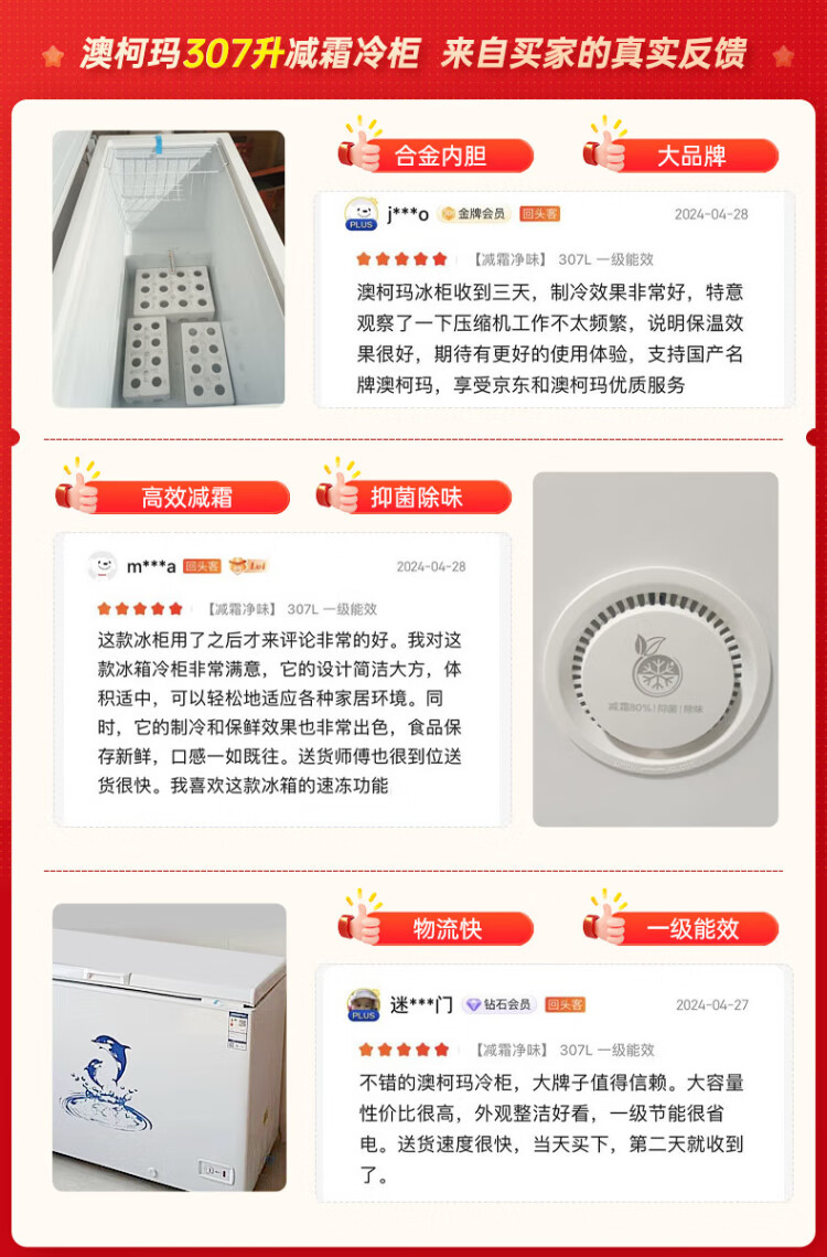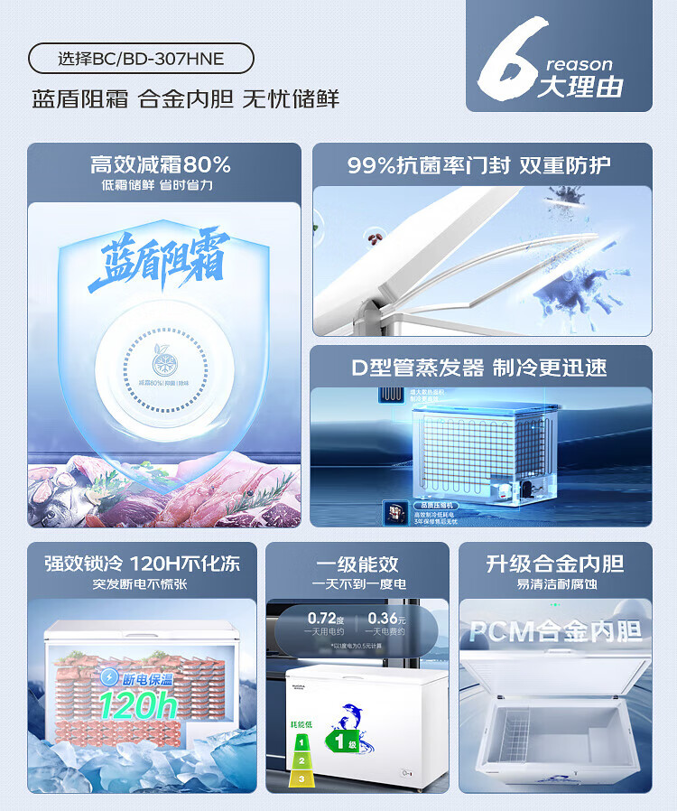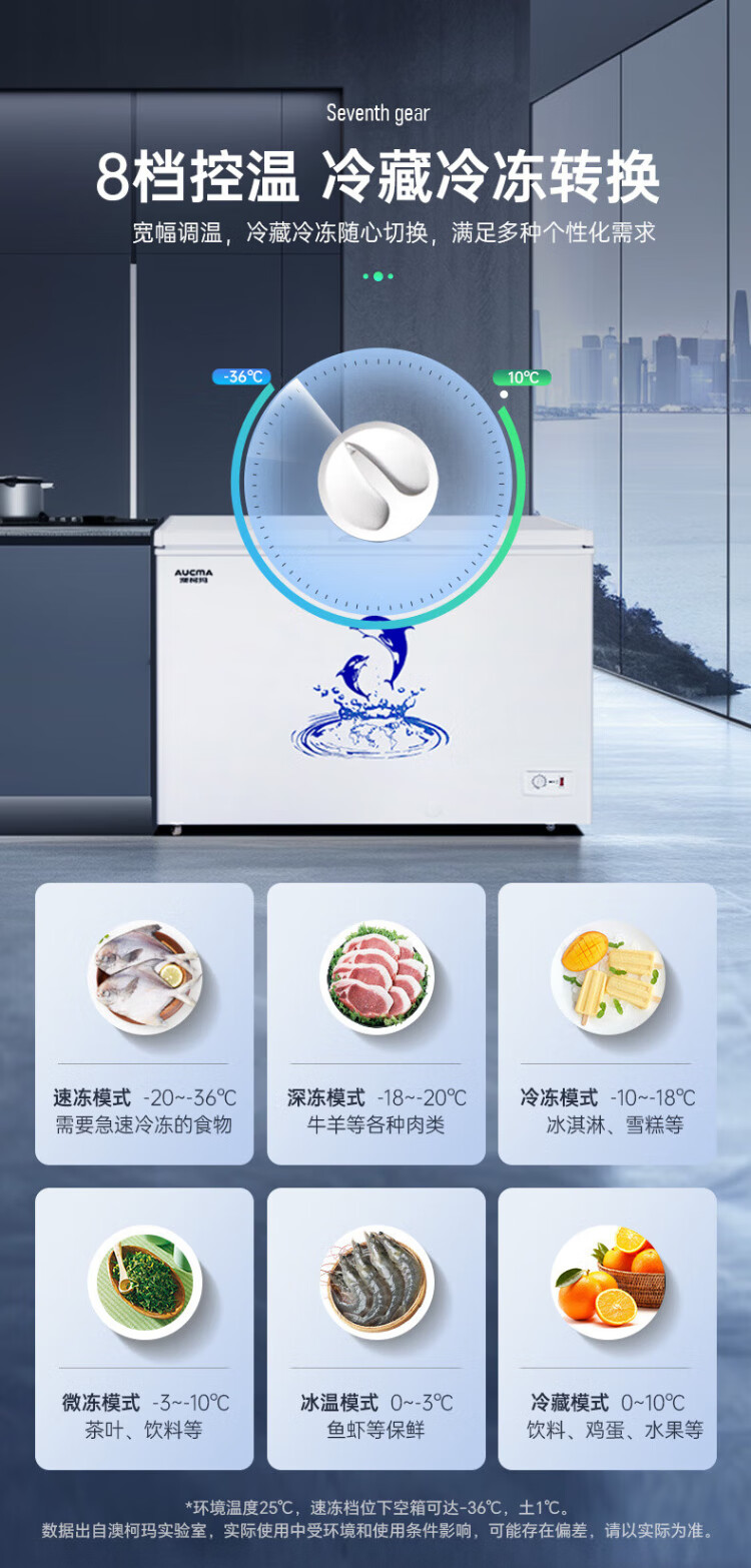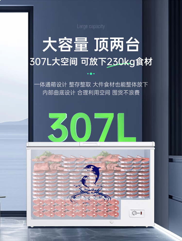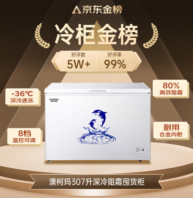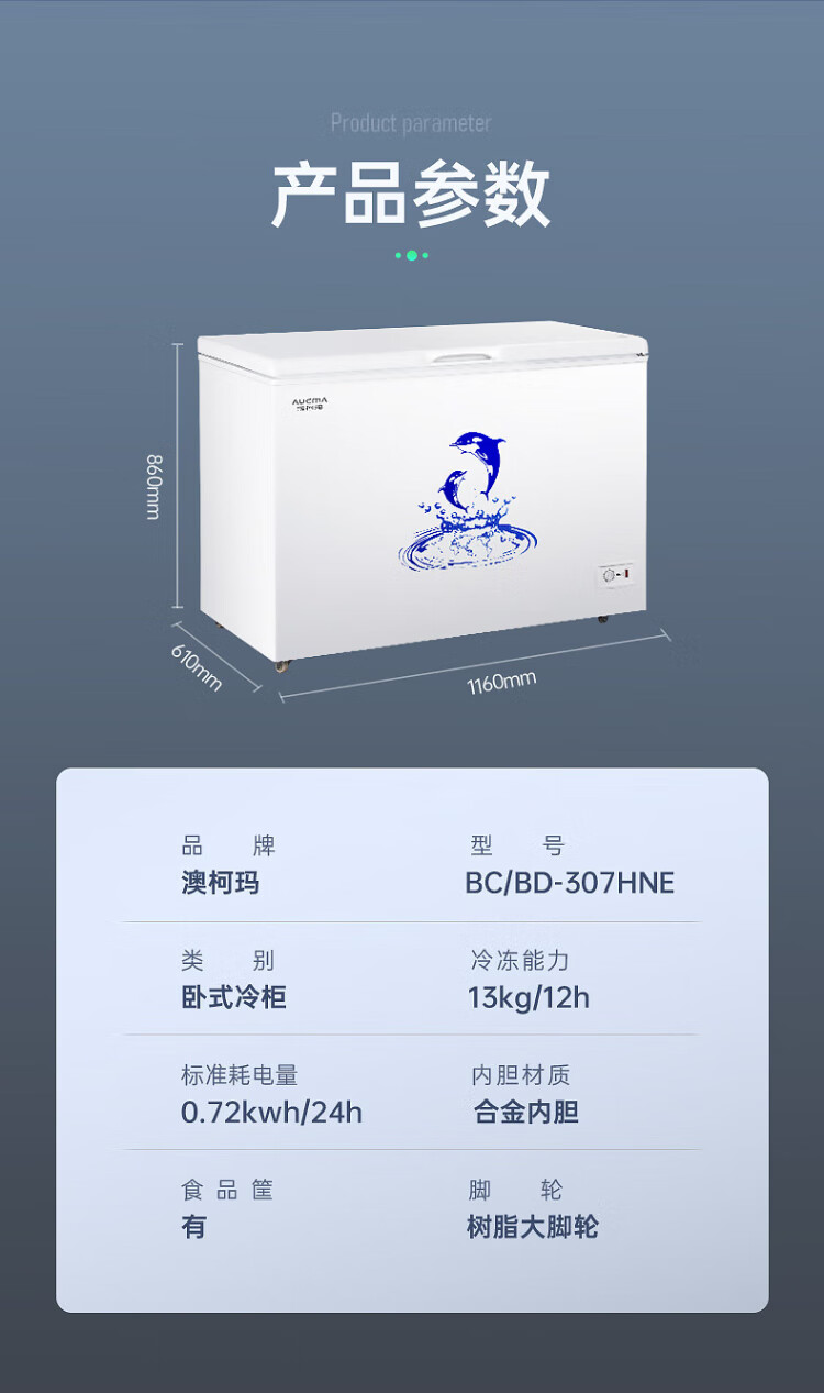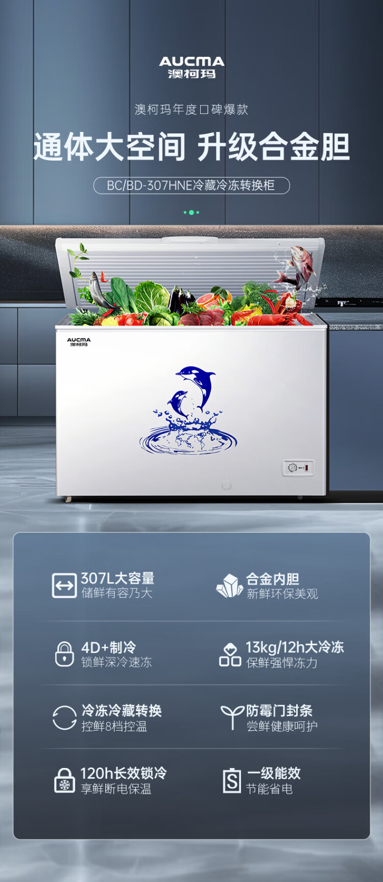 AUCMA 307-liter frost-reducing freezer household large-capacity refrigerator freezer horizontal freezer refrigerator ice cream cabinet first-level energy efficiency BC/BD-307HNE national subsidy