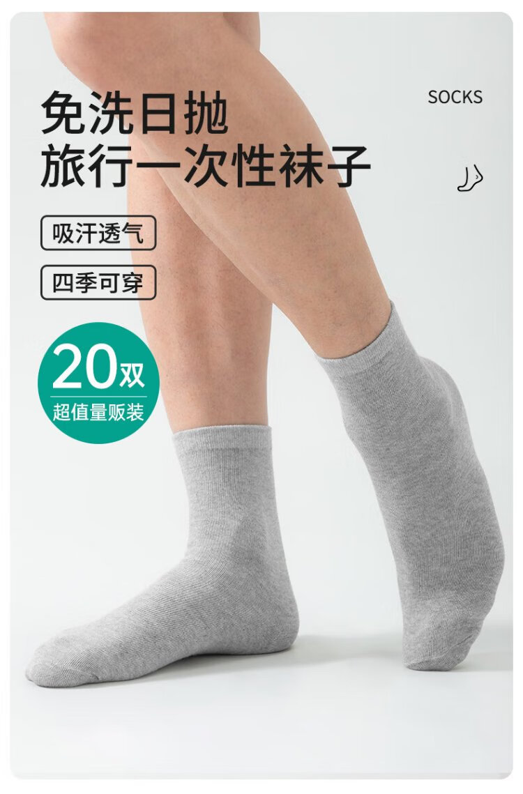 Beianshi disposable socks men's summer thin daily disposable socks travel supplies sweat-absorbent breathable sports socks mid-tube men's socks 20 pairs