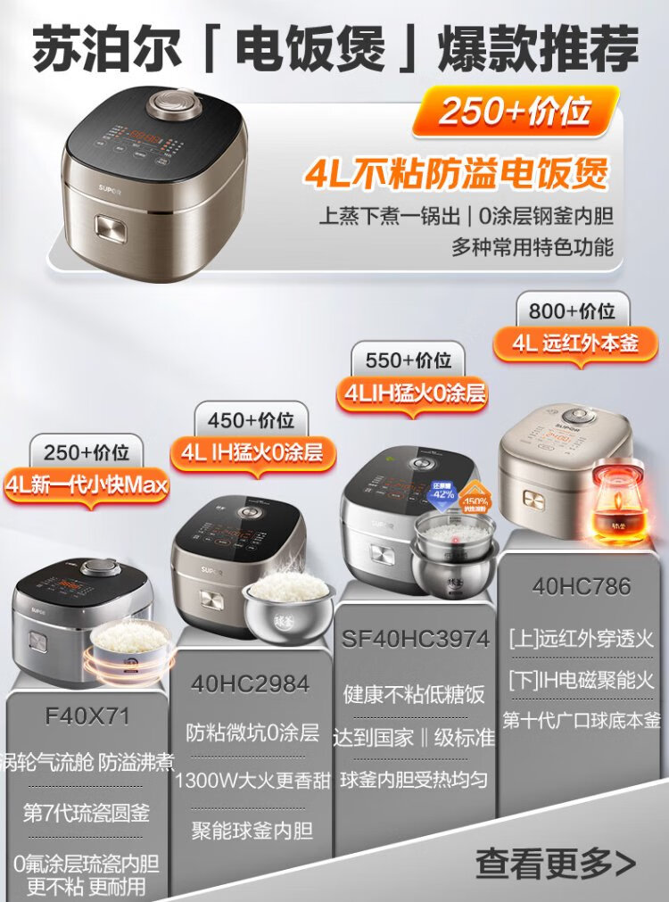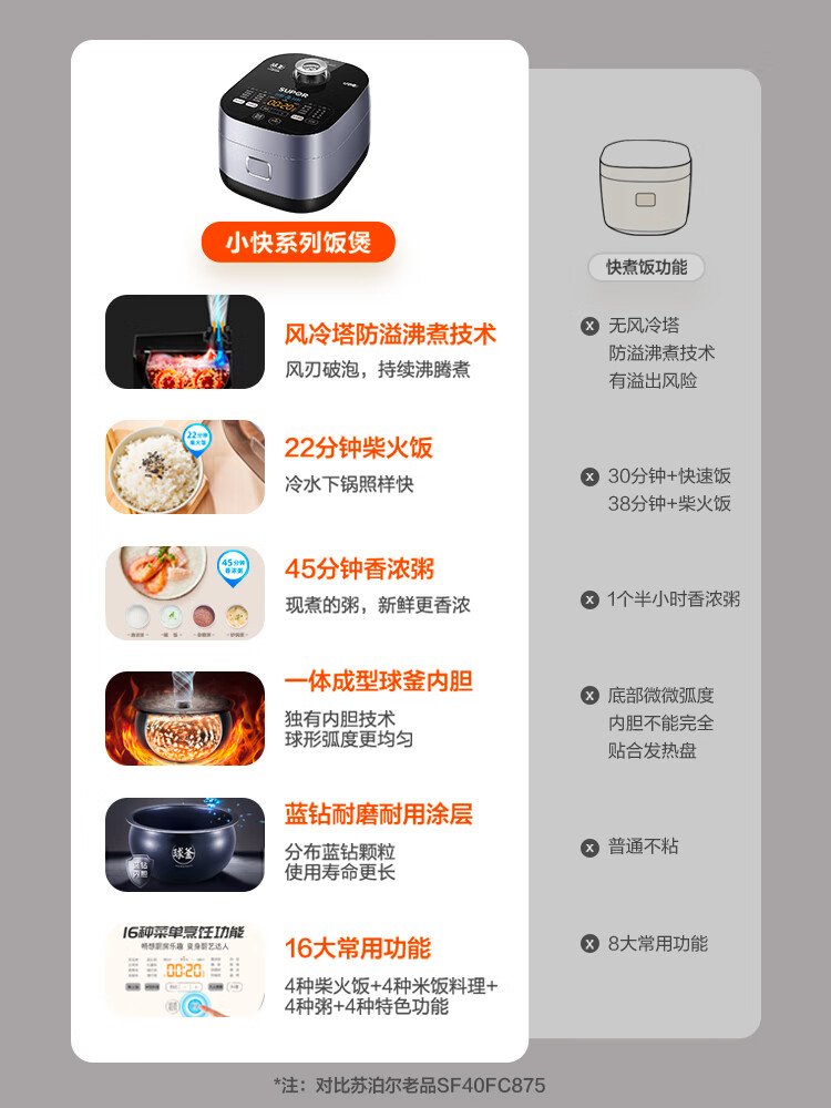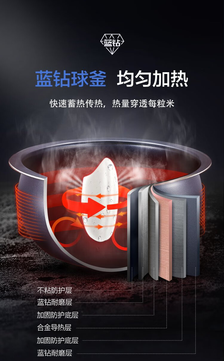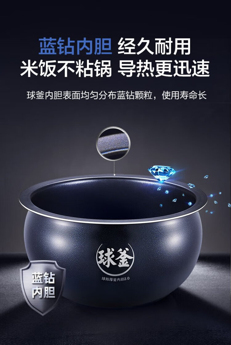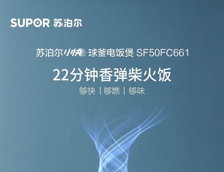 SUPOR rice cooker 4-5 people large capacity 5 liter blue diamond small fast ball kettle liner household non-stick firewood rice multi-function micro-pressure smart rice cooker SF50FC661