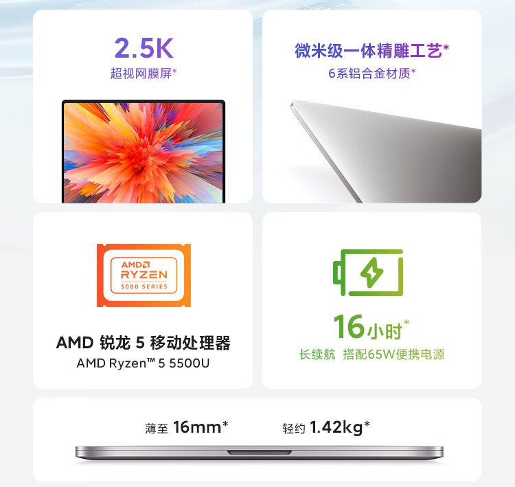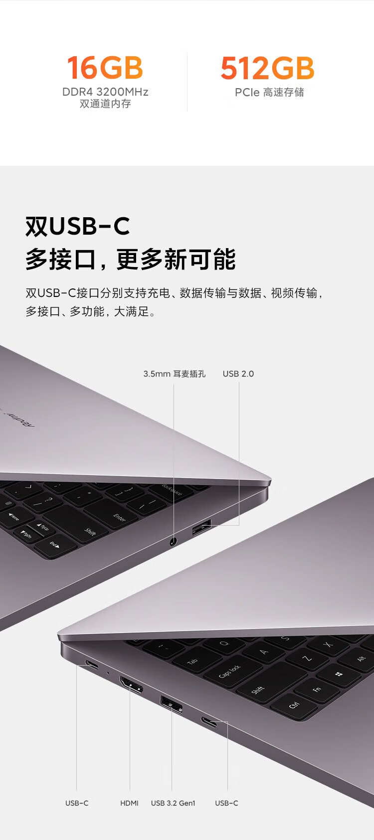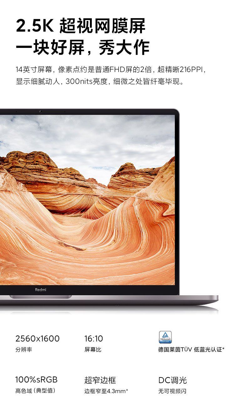 Xiaomi laptop Redmi RedmiBookPro 14-inch 2.5K HD screen high-performance thin and light notebook R5 16G 512G business office long battery life