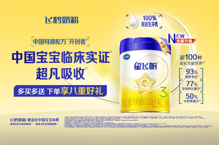 Feihe Xingfeifan Infant Formula Milk Powder Stage 3 (1-3 years old) 700g*6 Patented OPO Childcare Subsidy