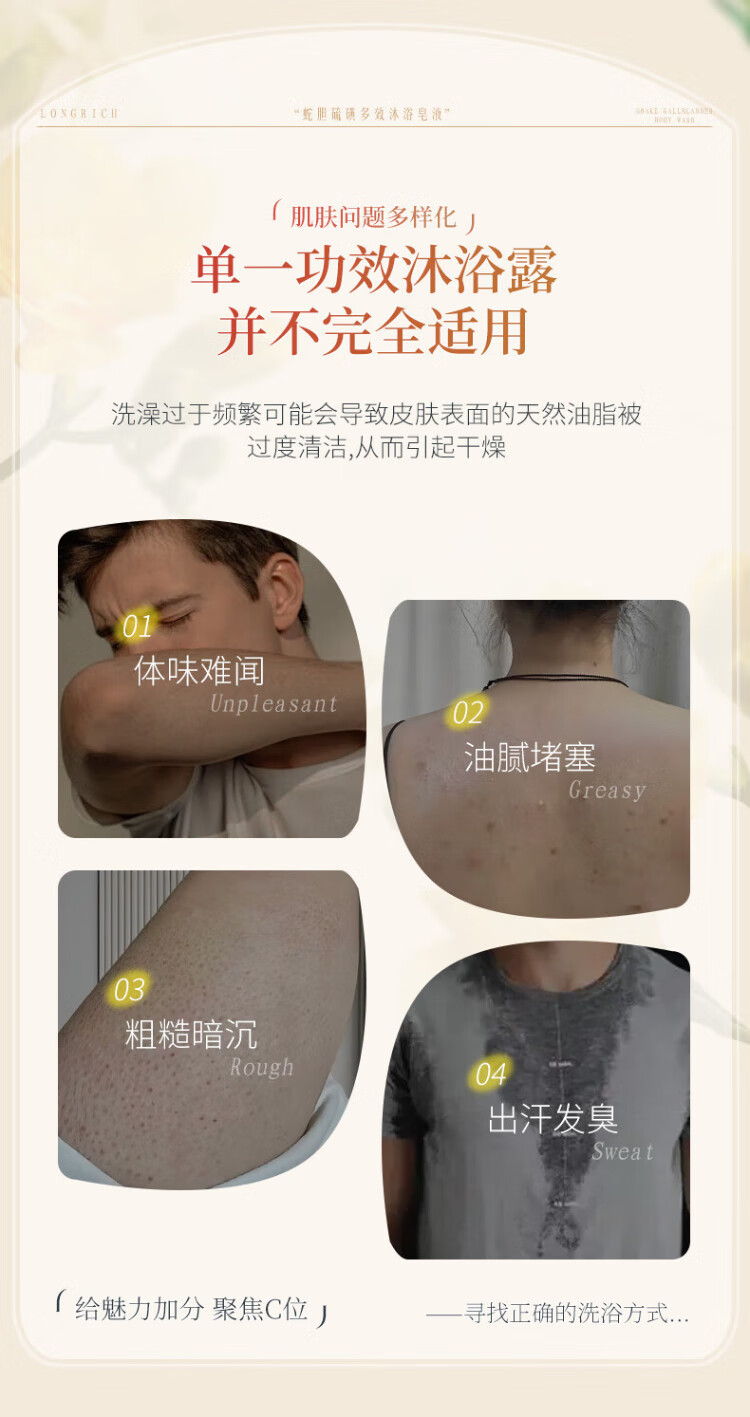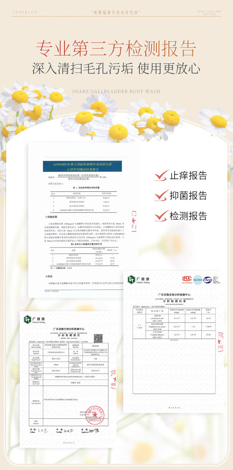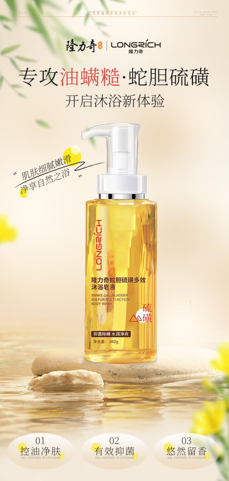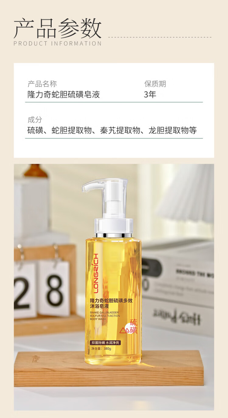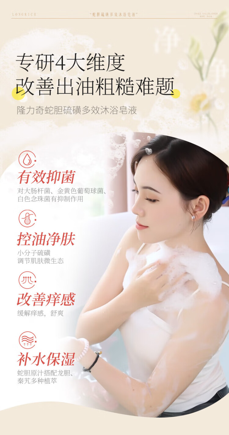 Longliqi snake gall sulfur multi-effect bath soap antibacterial and mite removal liquid soap wash face wash hair bath unisex