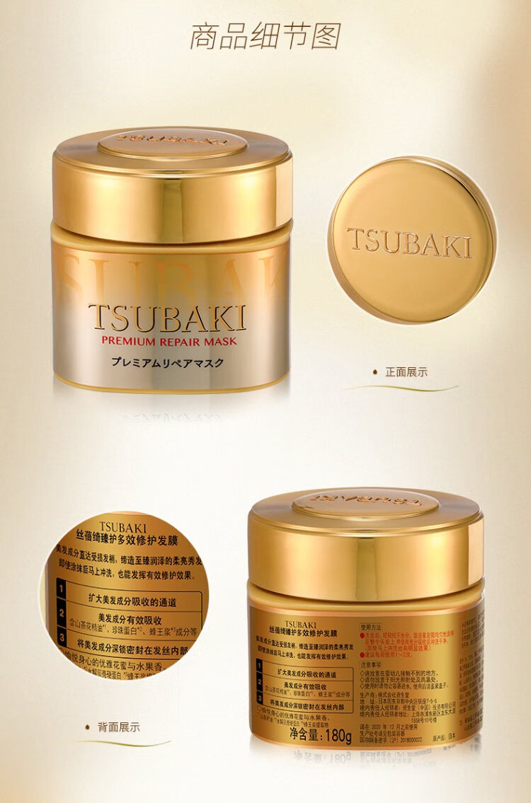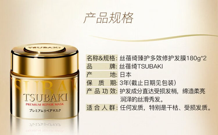 TSUBAKI Qinyao Zhenzhi Repair Hair Mask 180g*2 Set Hair Care, Moisturizing, Smoothing, Improves Dry and Frizzy OCC