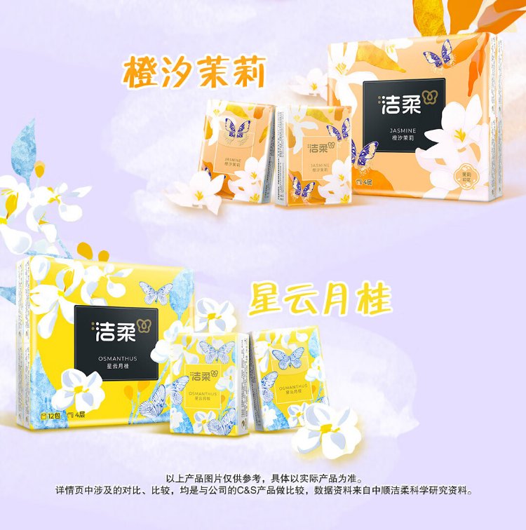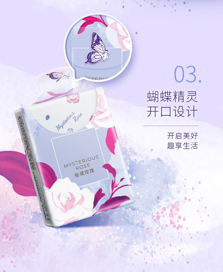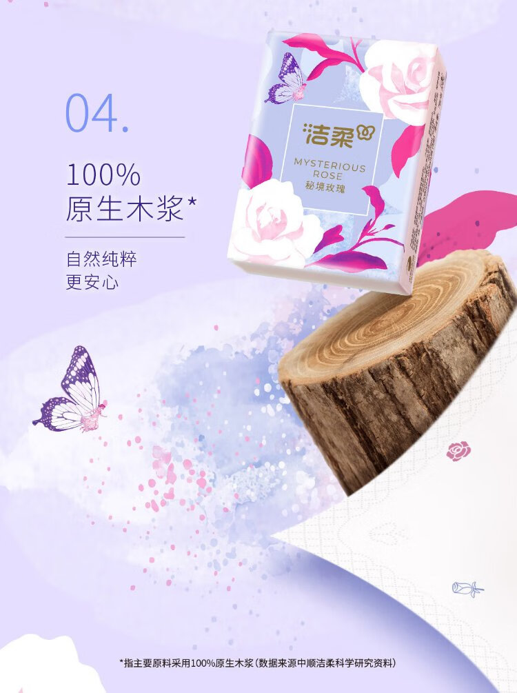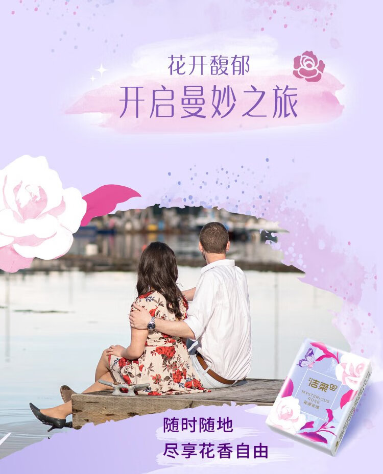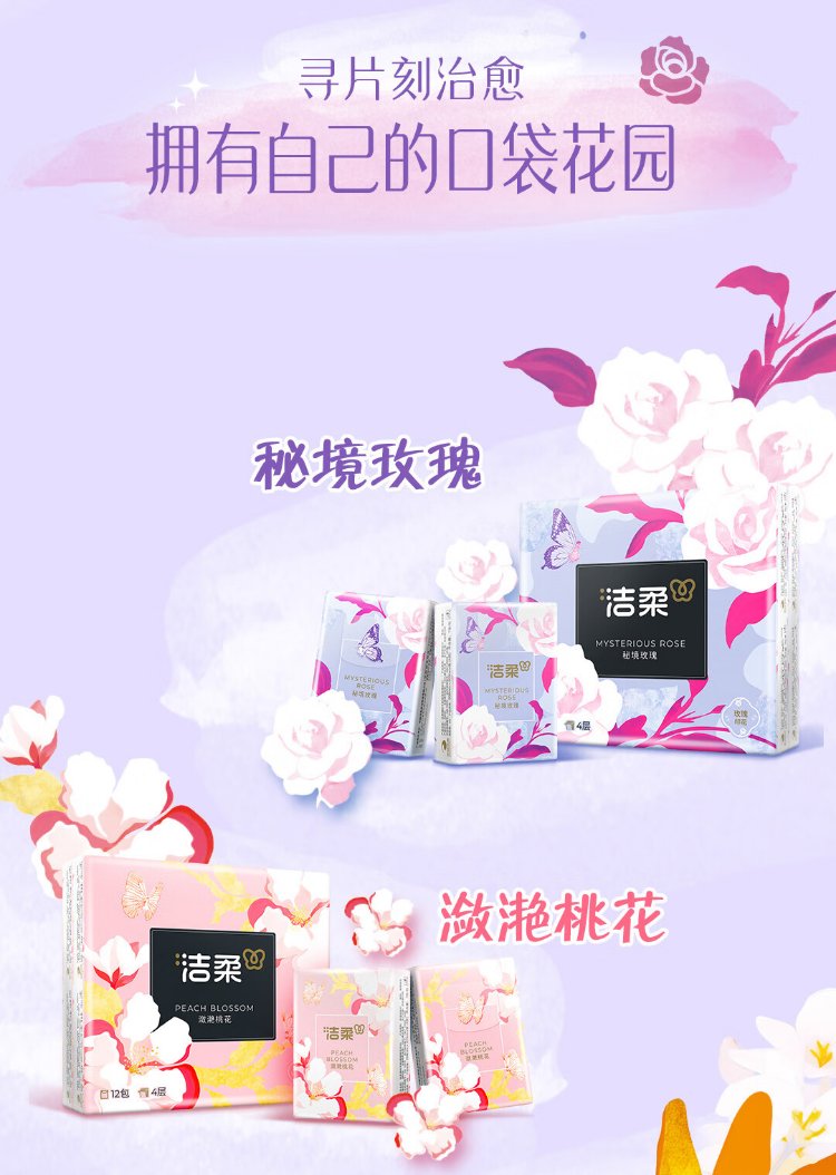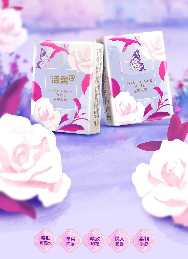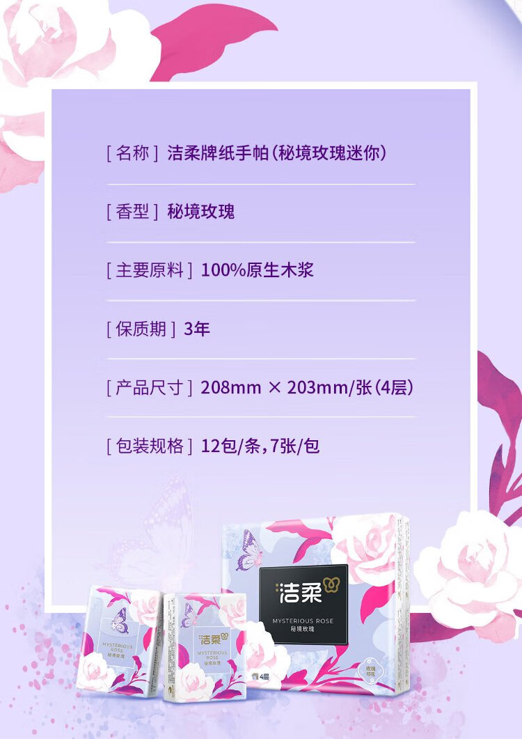 Jierou handkerchief paper secret rose 4 layers 7 pieces * 12 pack rose scented tissue small bag pocket garden premium fragrance