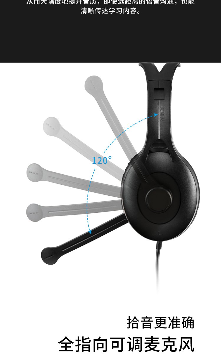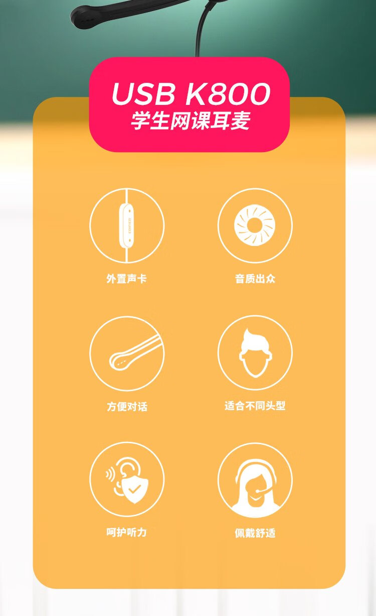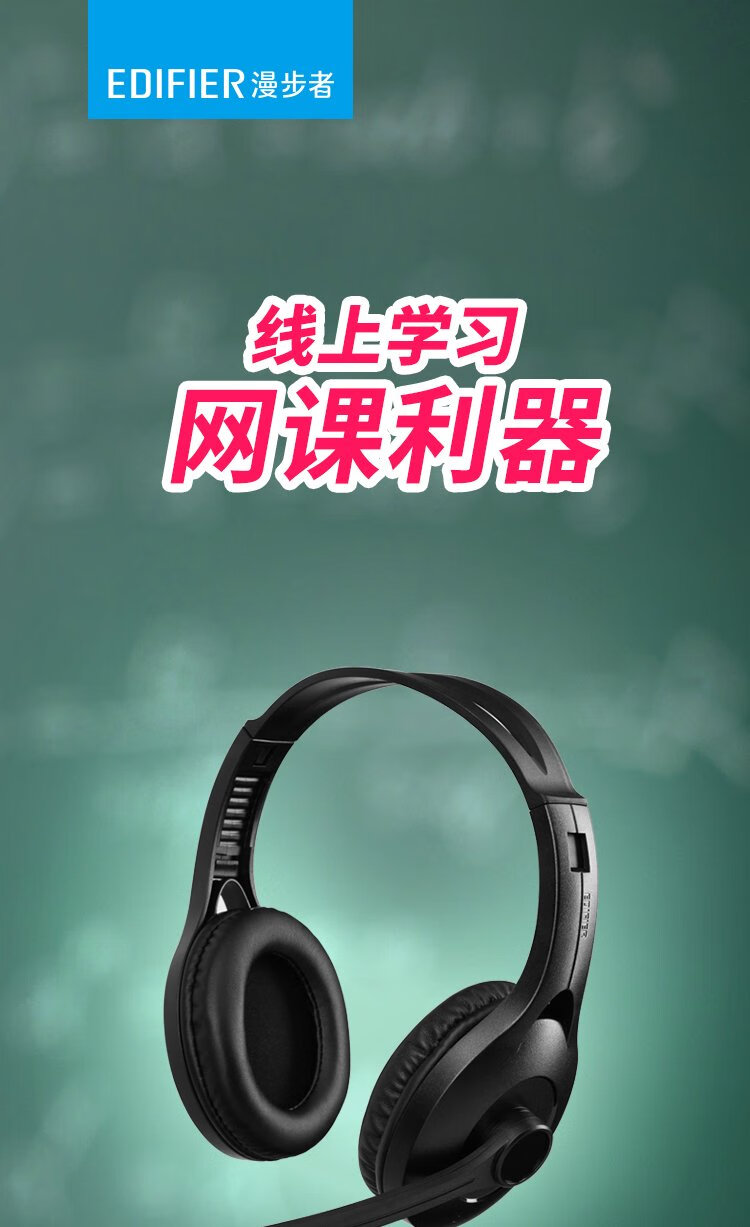 Edifier (EDIFIER) meets the national testing requirements USB K800 head-mounted computer notebook wired headset gaming headset online education listening dialogue headset black