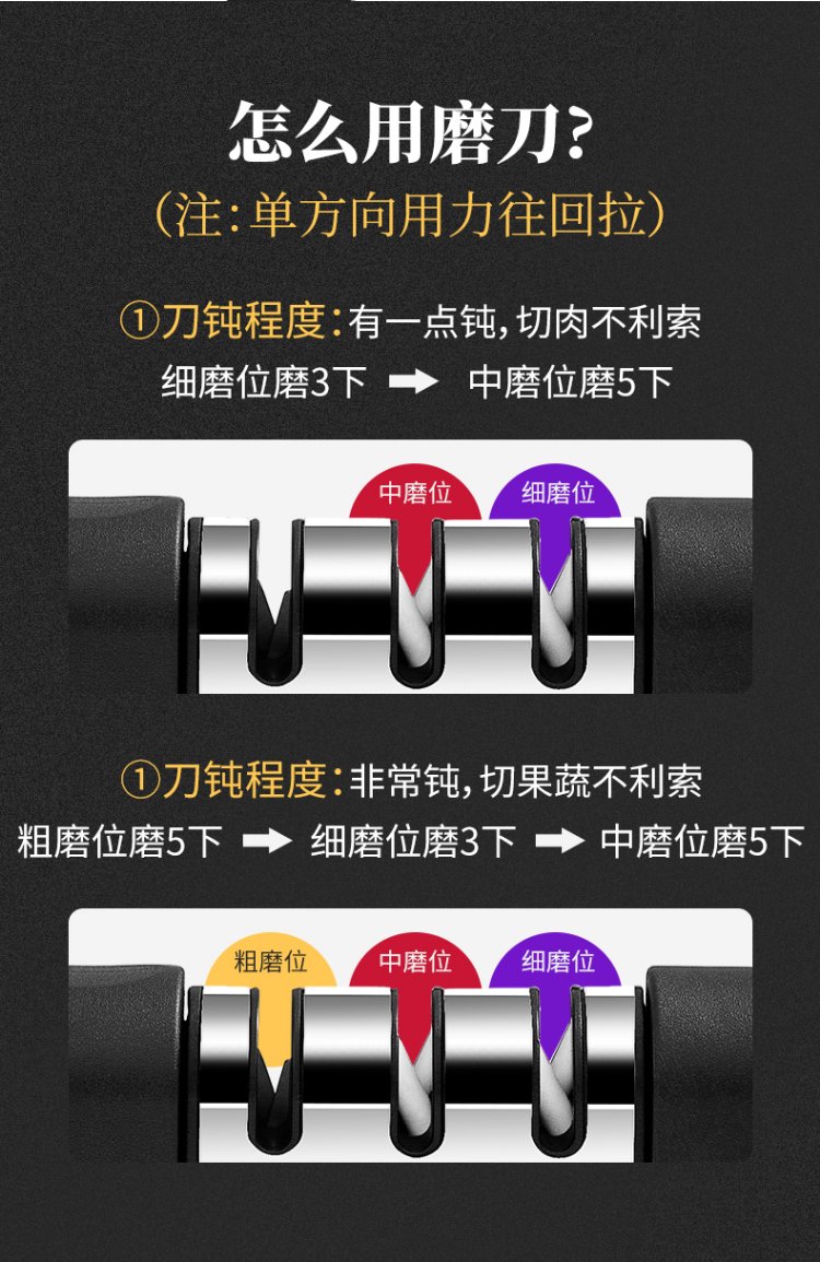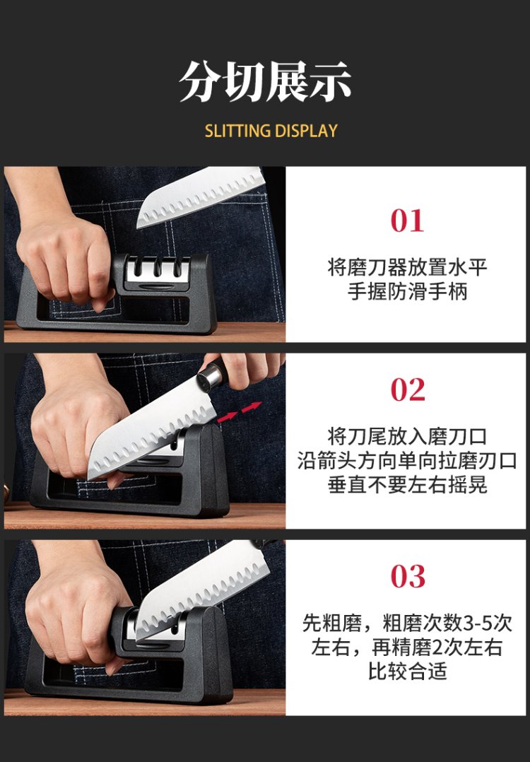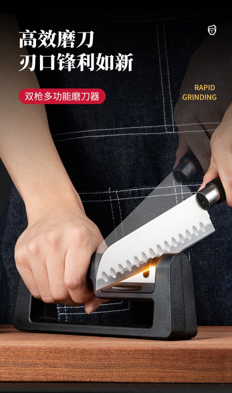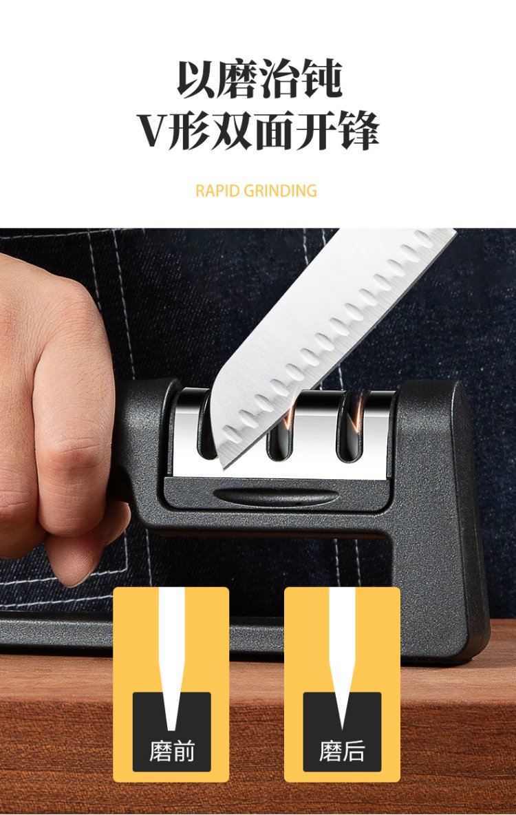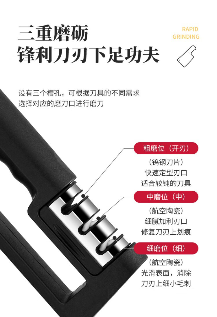 Double-gun kitchen knife special knife sharpener, home kitchen three-slot multi-functional whetstone, fruit knife sharpening stick artifact