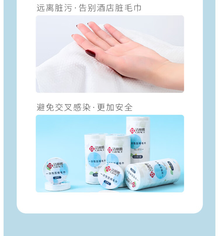 Jialiya Large Travel Disposable Compressed Towels 10 Portable Independent Pearl Pattern Head Wipes Wet and Dry Face Wash Towels