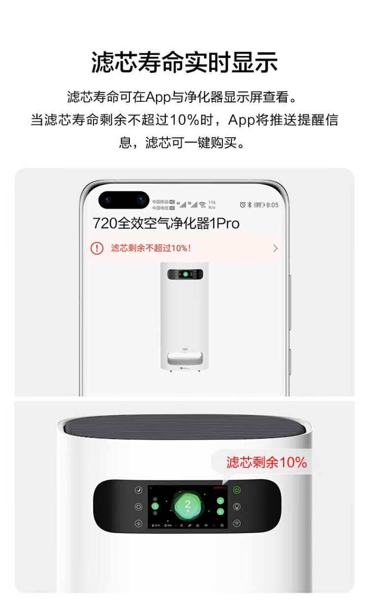 Huawei Smart Selection Hongmeng Smart Selection 720 air purifier filter, sterilization, smoke odor removal, formaldehyde removal and haze five-layer purification, compatible with purifier 1Pro