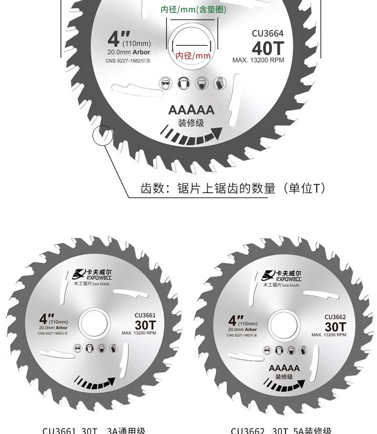 Kraftwell cutting blade woodworking saw blade alloy circular saw blade table saw electric circular saw dust-free saw machine accessories 30 teeth CU3661