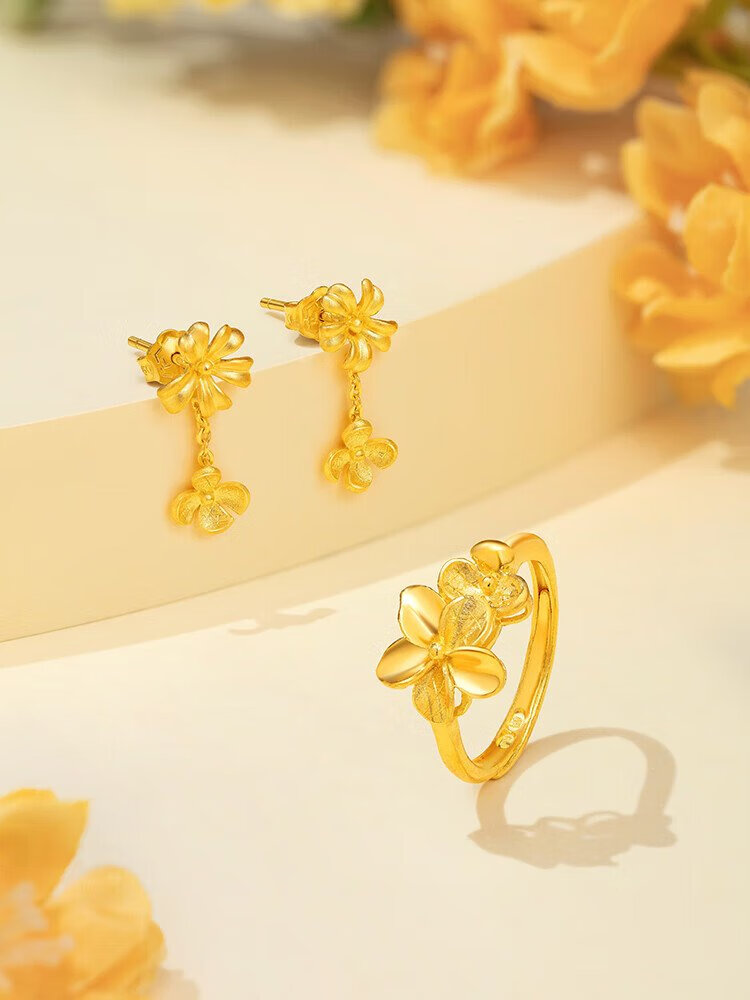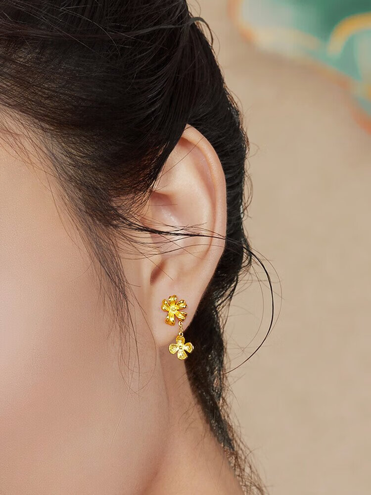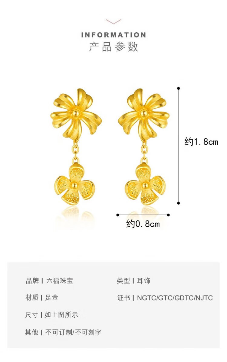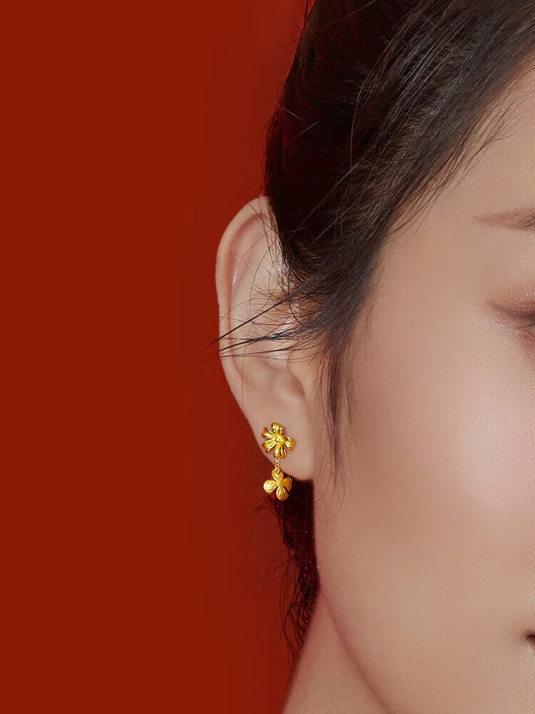Lukfook Jewelry Pure Gold Four Seasons Flowers Bloom Love Wedding Gold Earrings Earrings Price Approximately 2.67g