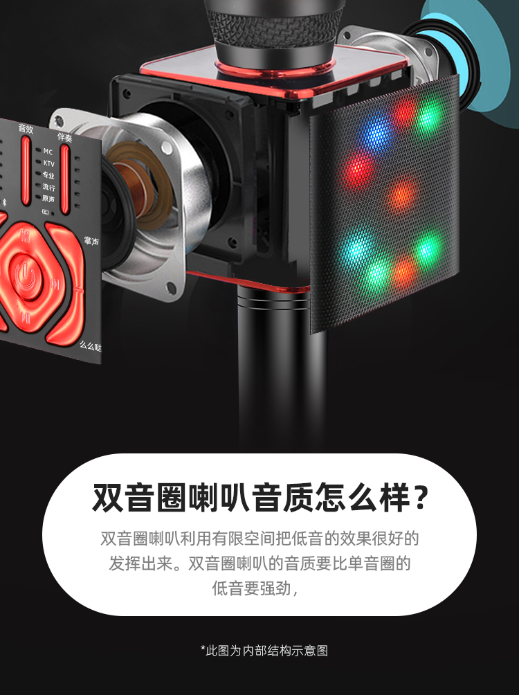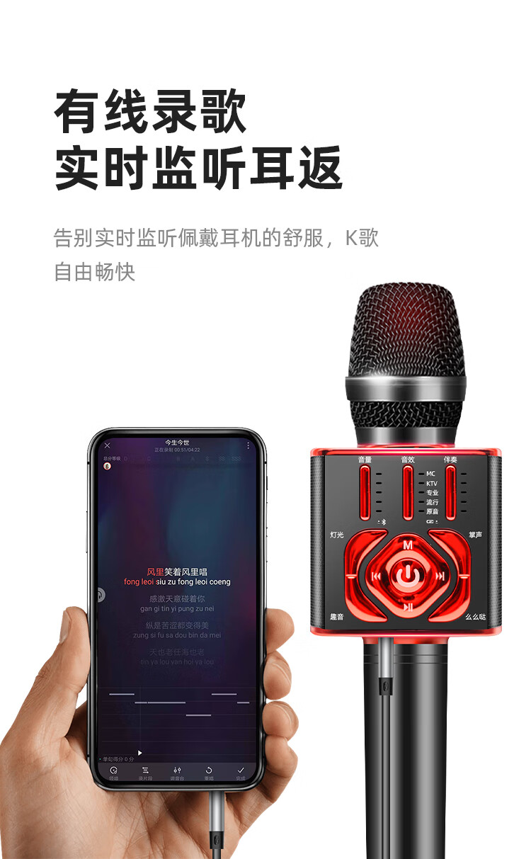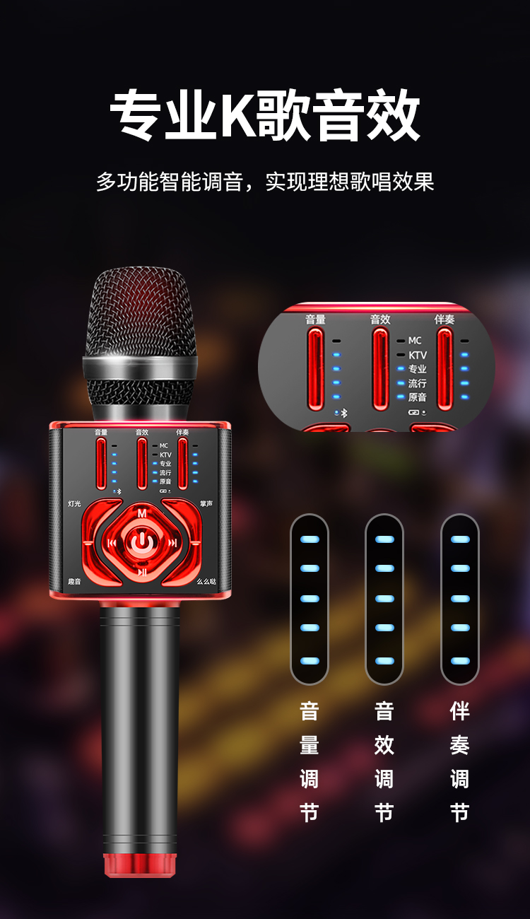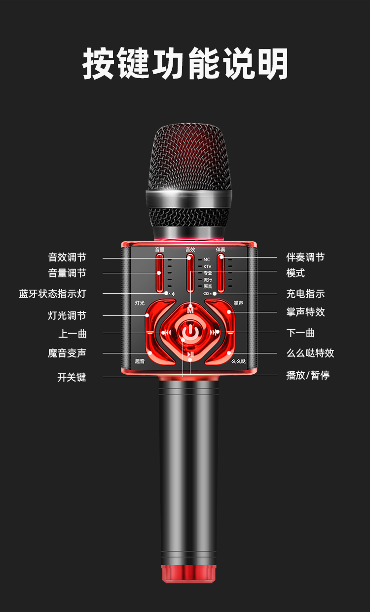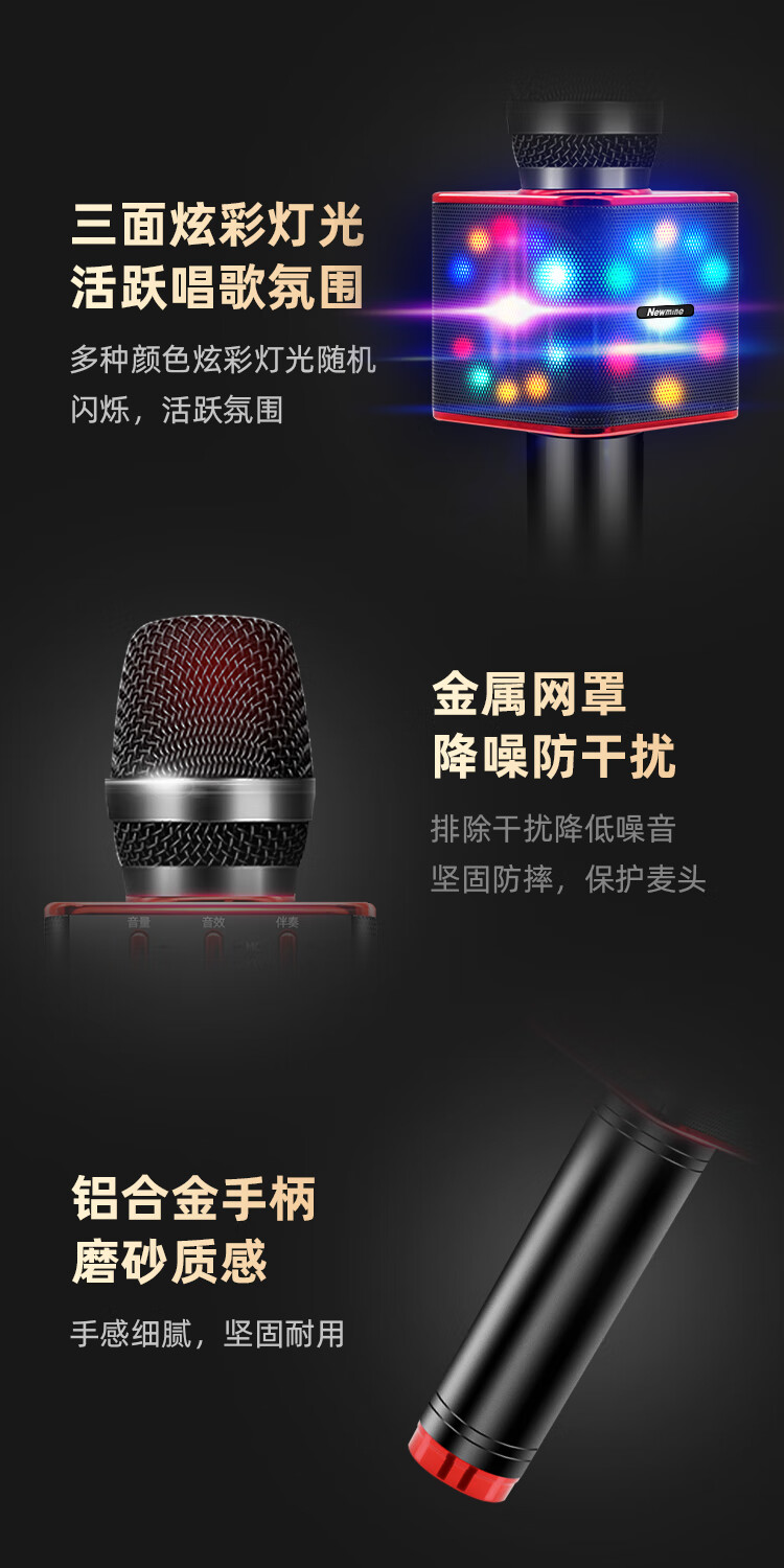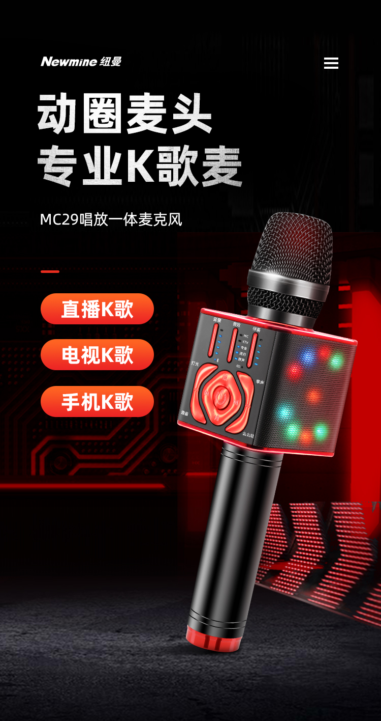 Newmine MC29 wireless microphone karaoke microphone audio integrated sound card microphone Little Bee amplifier mobile phone Bluetooth karaoke artifact black and red