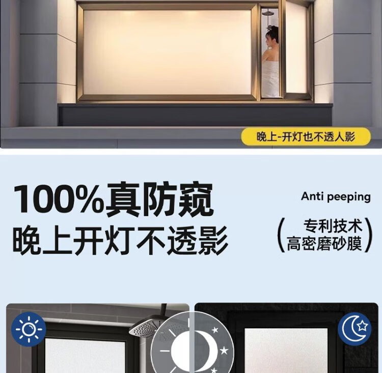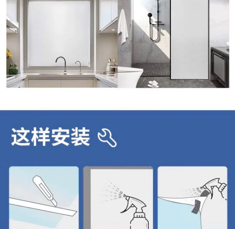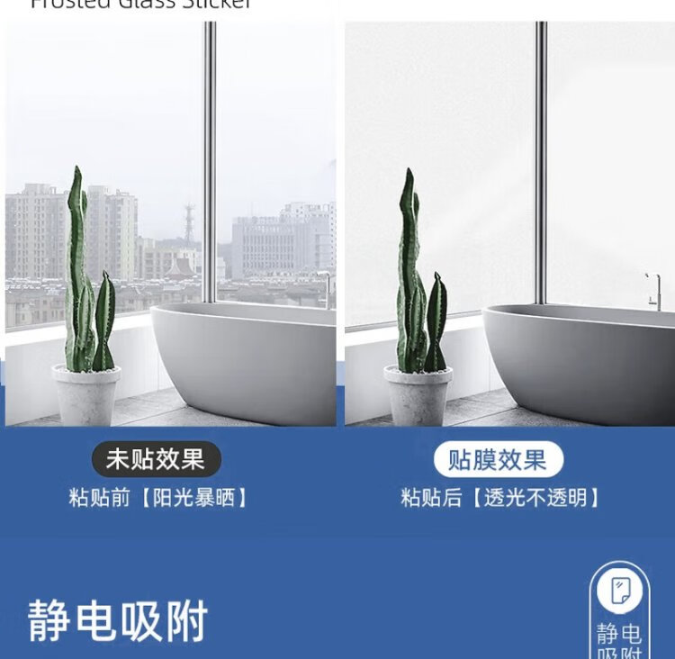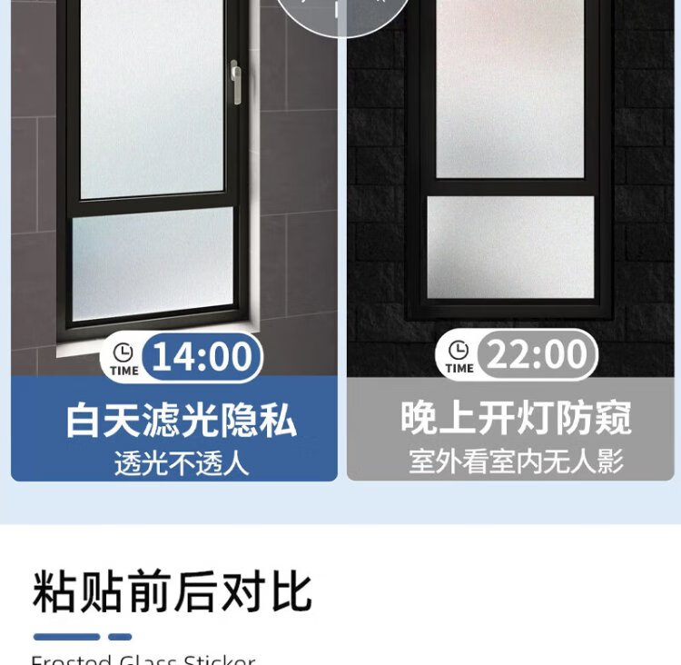 Fuju Frosted Glass Privacy Film Window Film Bathroom Sticker Bathroom Toilet Translucent Opaque 45*300cm