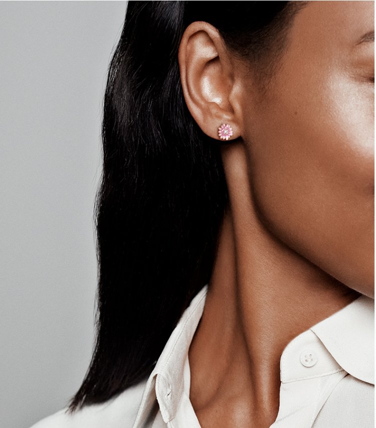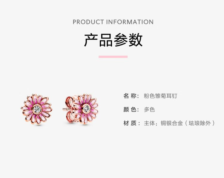 PANDORA Pink Daisy Earrings Rose Exquisite Couple Gift Birthday Gift for Girlfriend