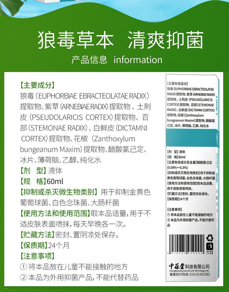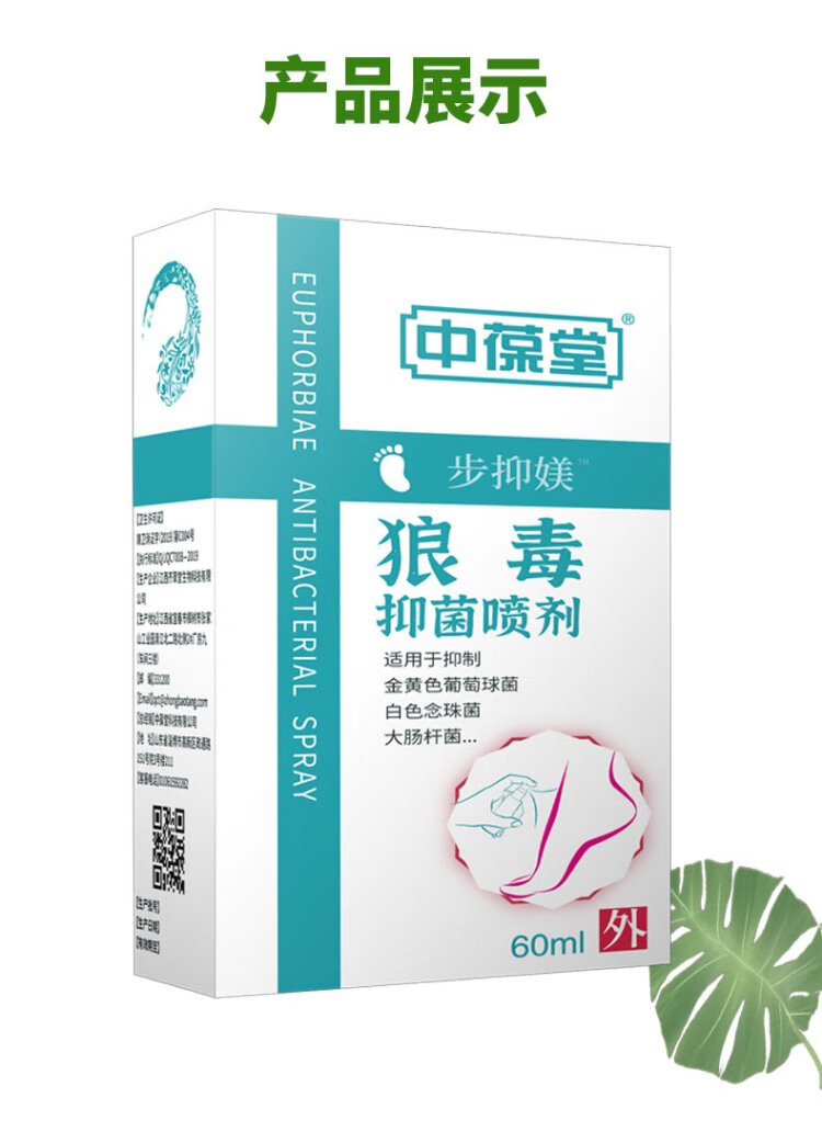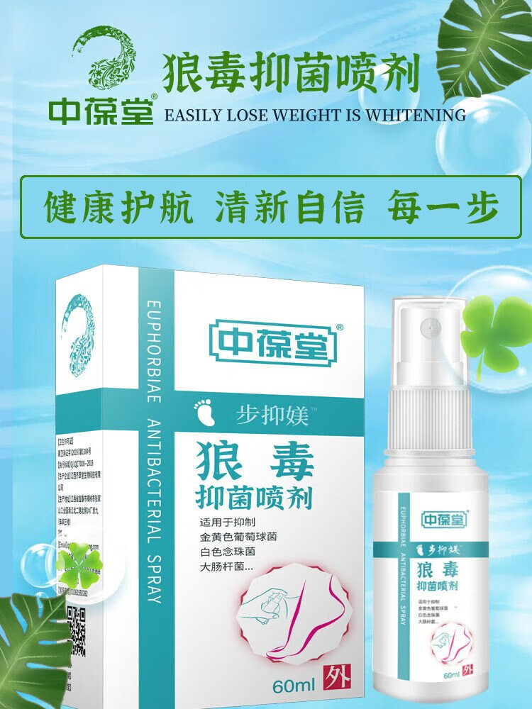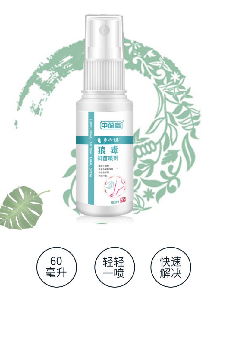 Zhongbaotang wolfsbane antibacterial spray 60ml herbal antibacterial spray non-beriberi foot odor spray peeling ointment