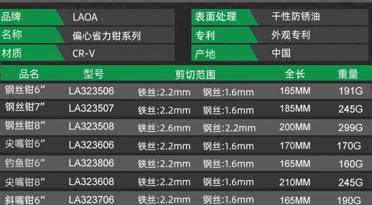 LAOA old A three-piece set of pliers wire pliers diagonal nose pliers needle nose pliers electrician pliers home set