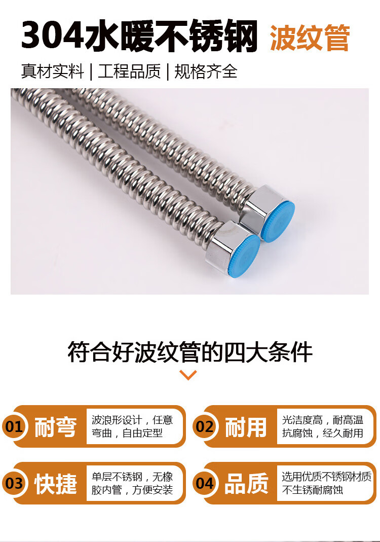 Hasdick 60cm electric water heater bellows 304 stainless steel water inlet hose 4 points water supply pipe (304 pipe + 304 cap) HK-614
