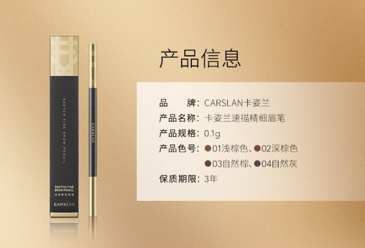Carslan Quick Draw Fine Eyebrow Pencil Waterproof and Sweatproof Fine Refill Comes with Eyebrow Brush 01# Light Brown 0.1g Birthday Gift for Women