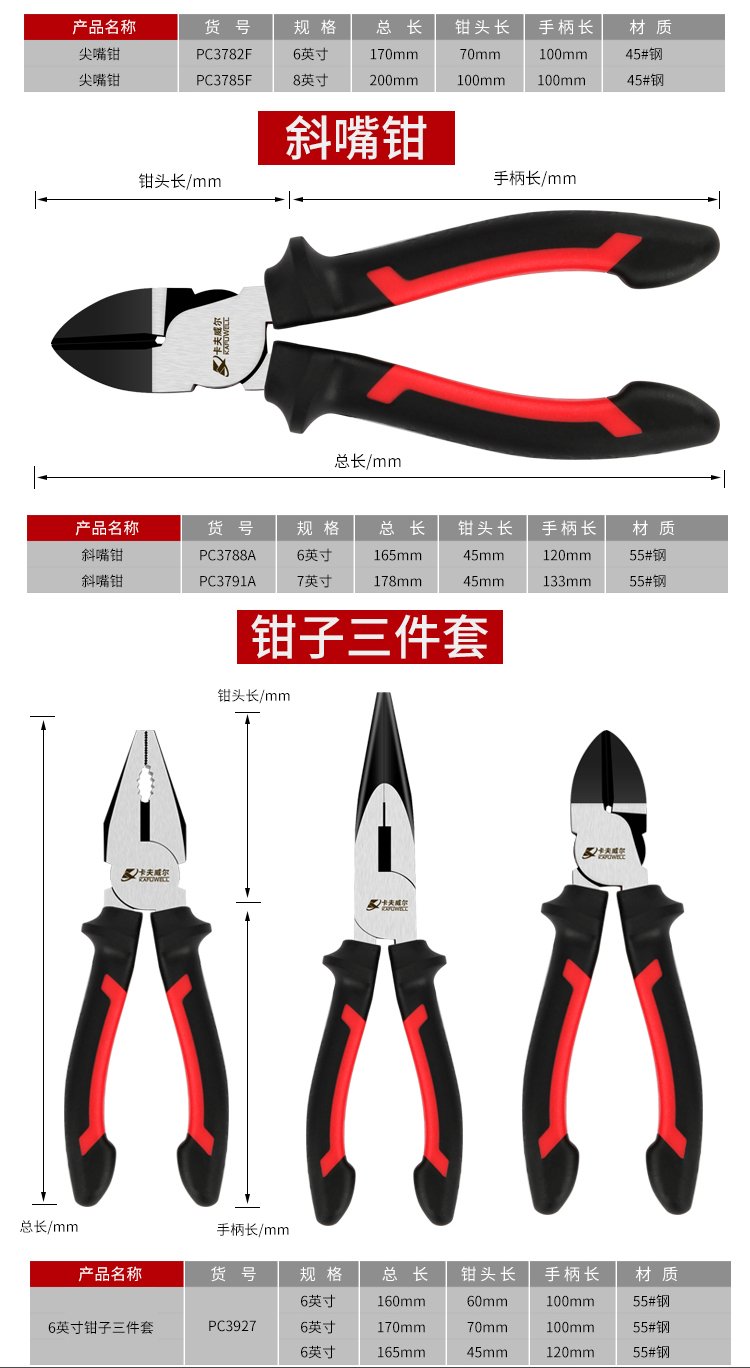 Kraftwell vise electrician wire pliers flat-blade wire pliers vise pliers 6 inches PC3781C