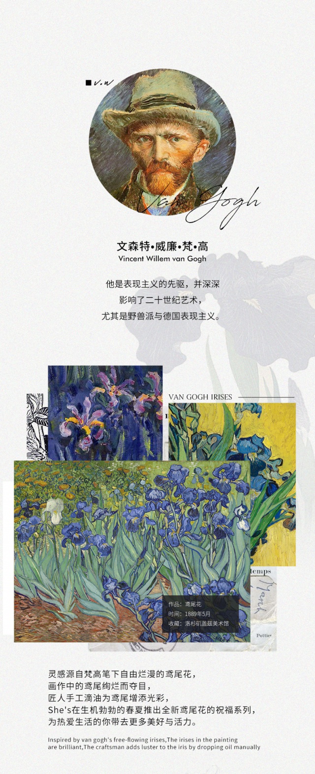 She s Qianzi Van Gogh's iris high-end ladies brooch dripping oil gradient corsage brooch birthday gift for girlfriend