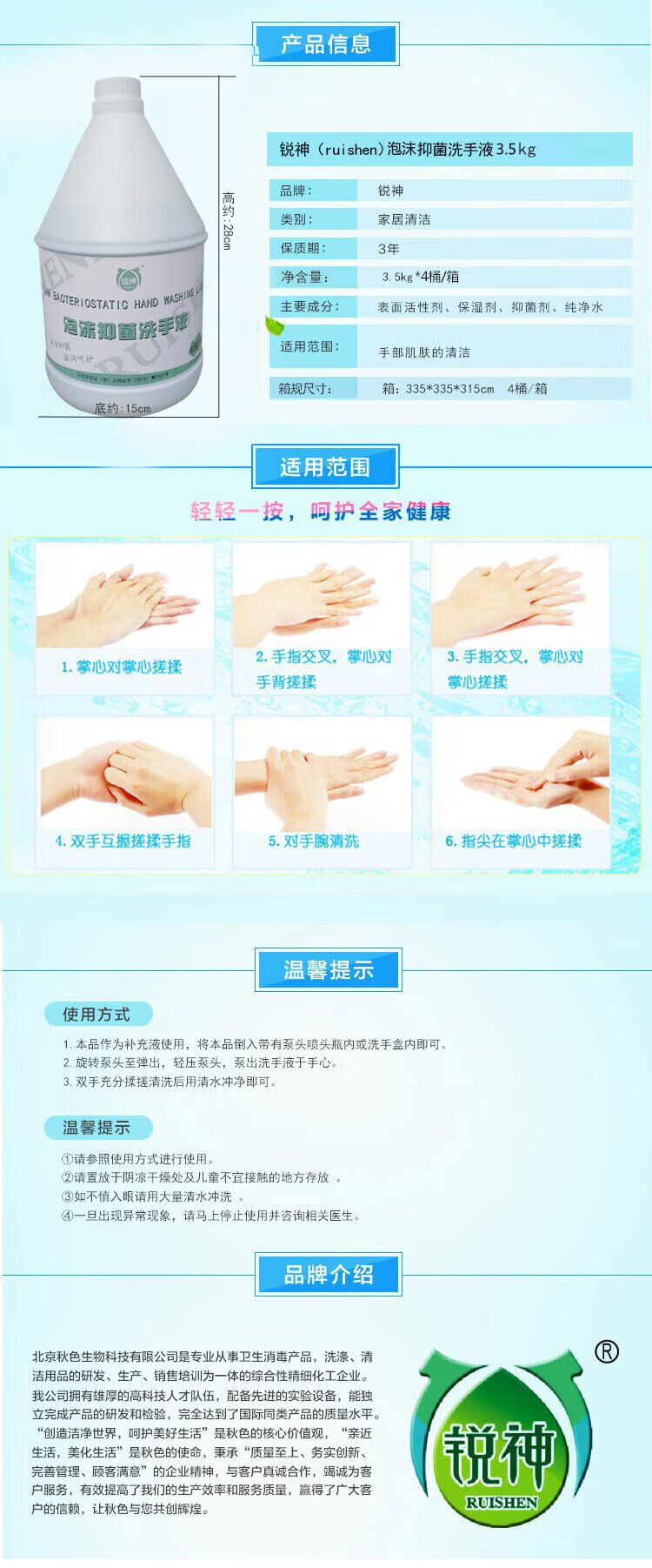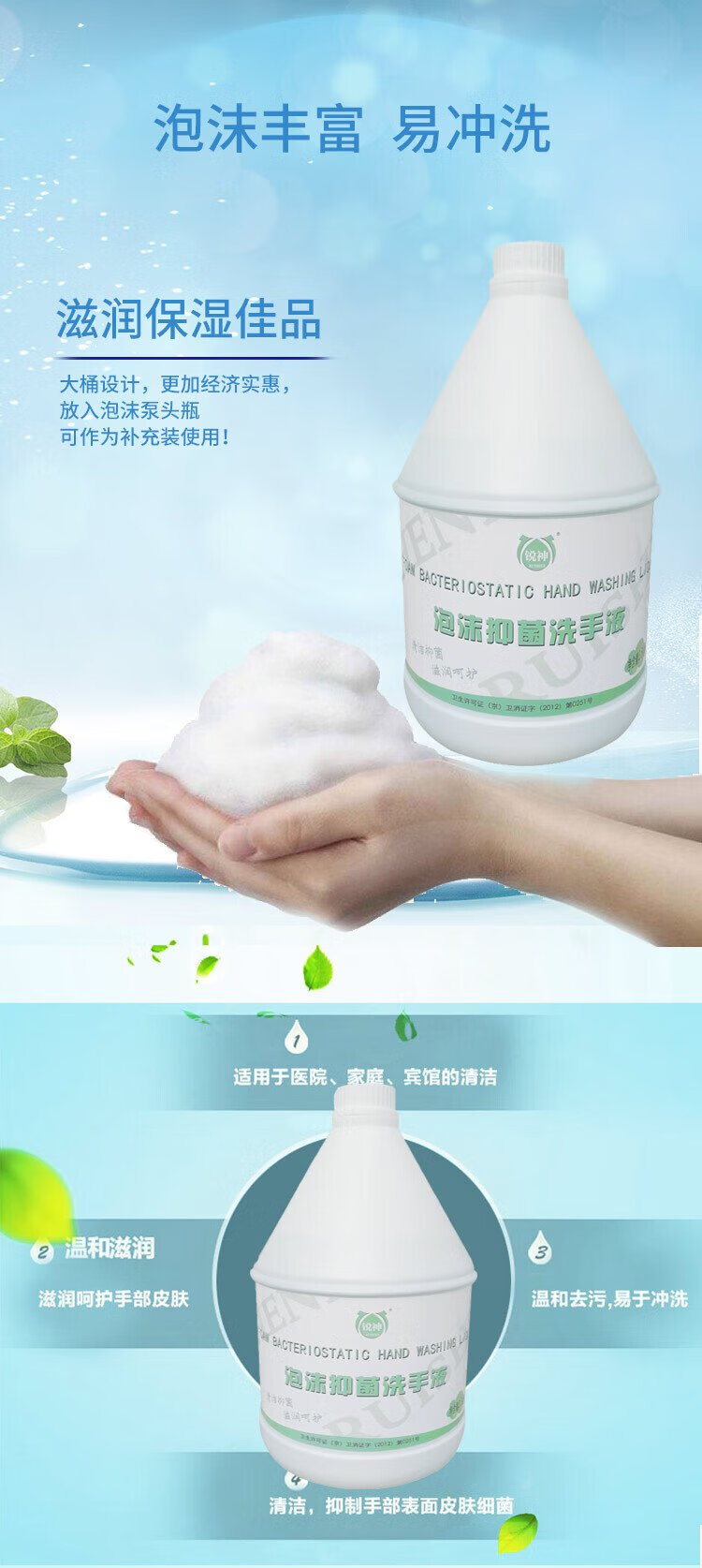 Ruishen Antibacterial Foam Hand Sanitizer 3.5kg Disinfection Grade Food Industry Family Hotel Workshop Restaurant Light Fragrance Refill