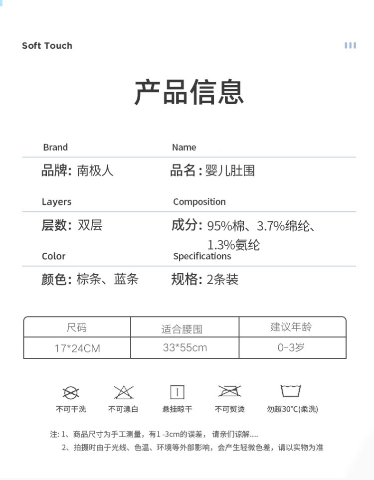Nanjiren Baby Belly Protector Newborn Belly Wrap Baby Autumn and Winter Double Layer Cotton Belly Protector Umbilical Cord Children's Anti-Cold 2 Pack