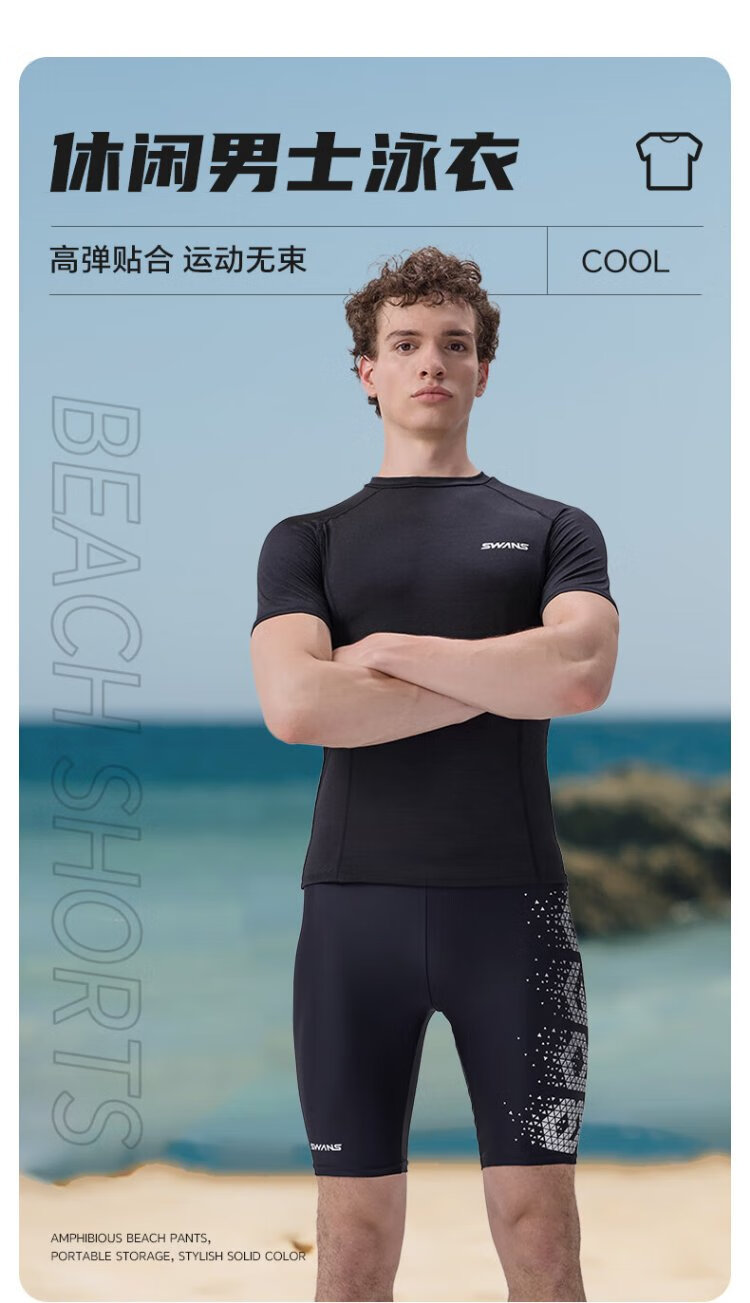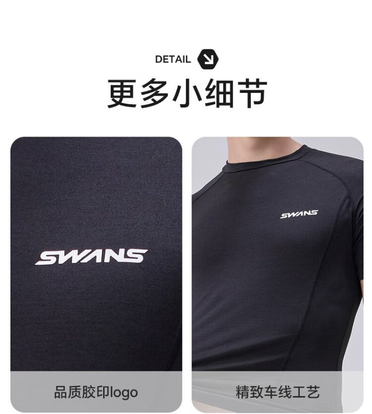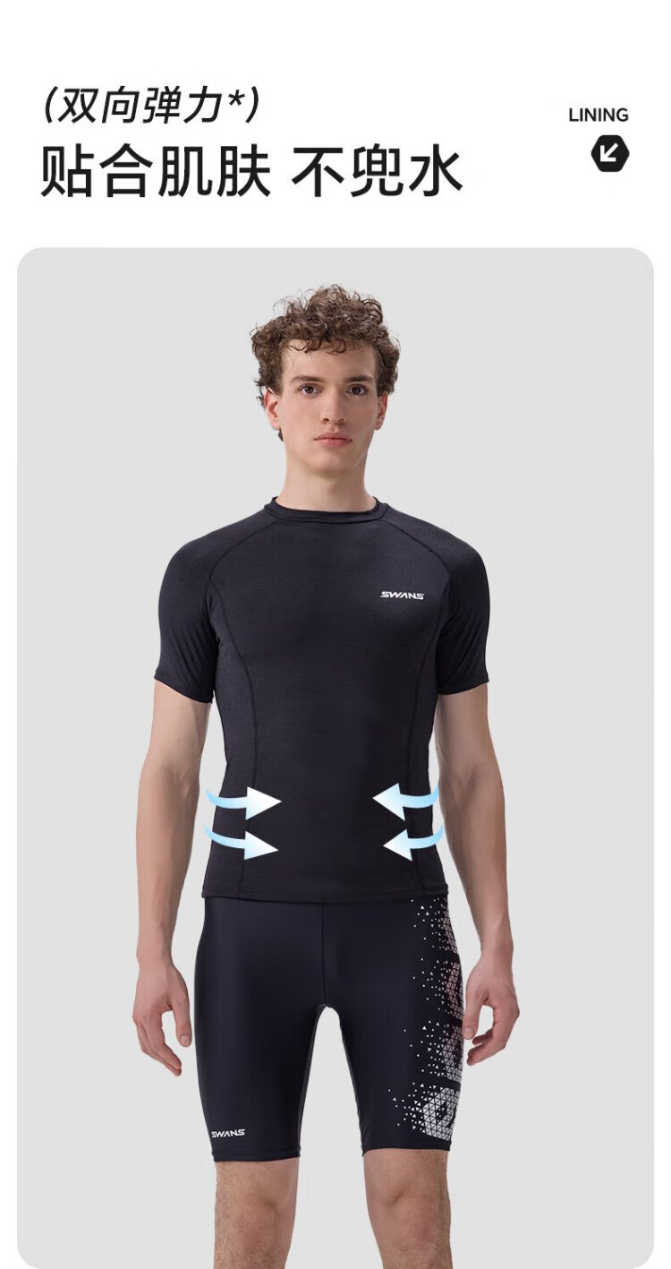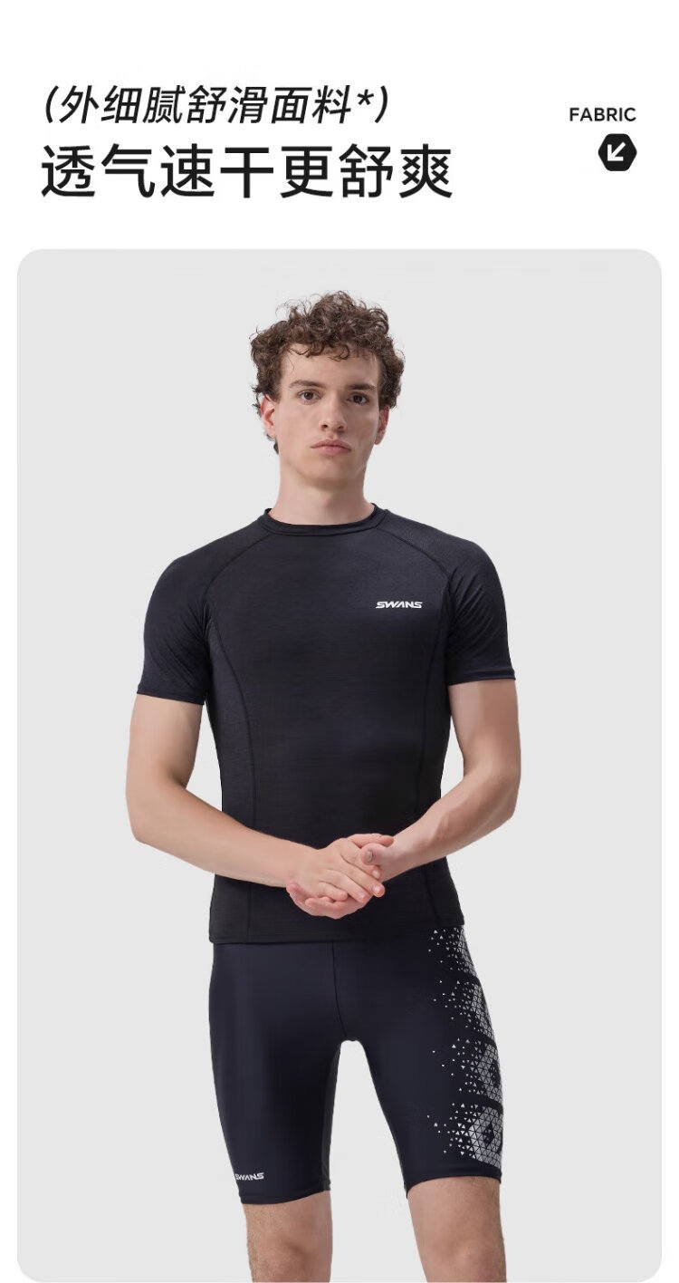 SWANS men's swimsuit, swimsuit, surf suit, short-sleeved top, men's professional quick-drying swimming equipment, black L