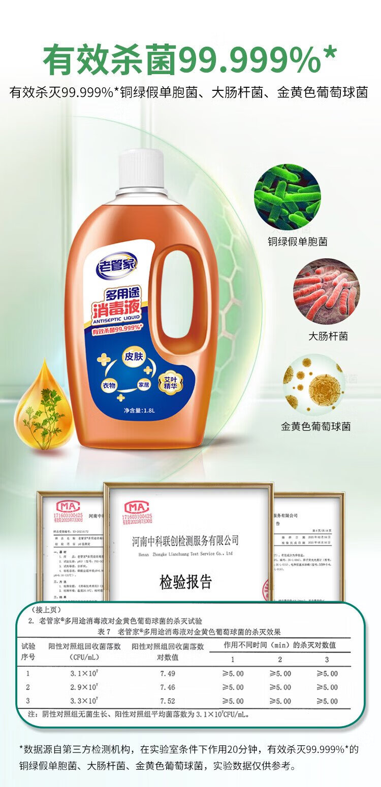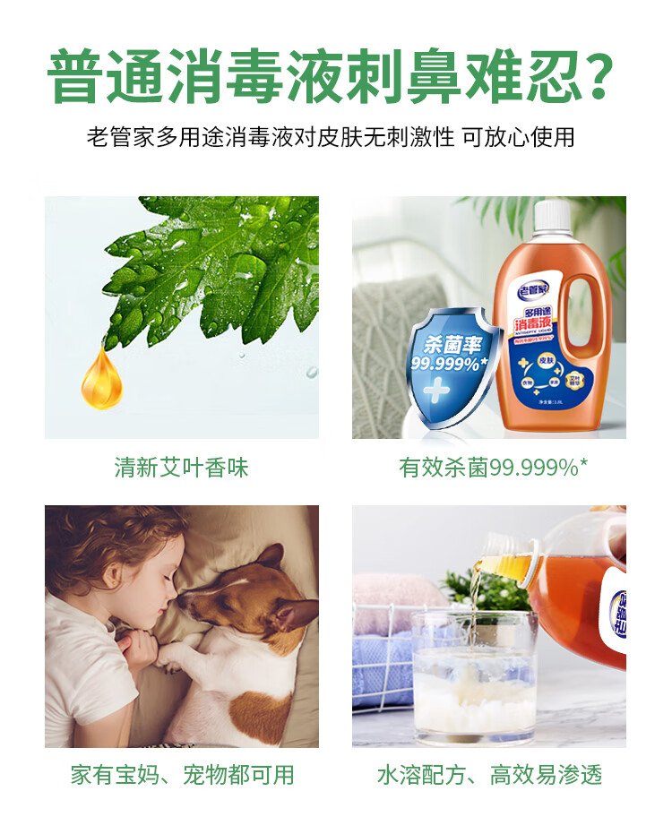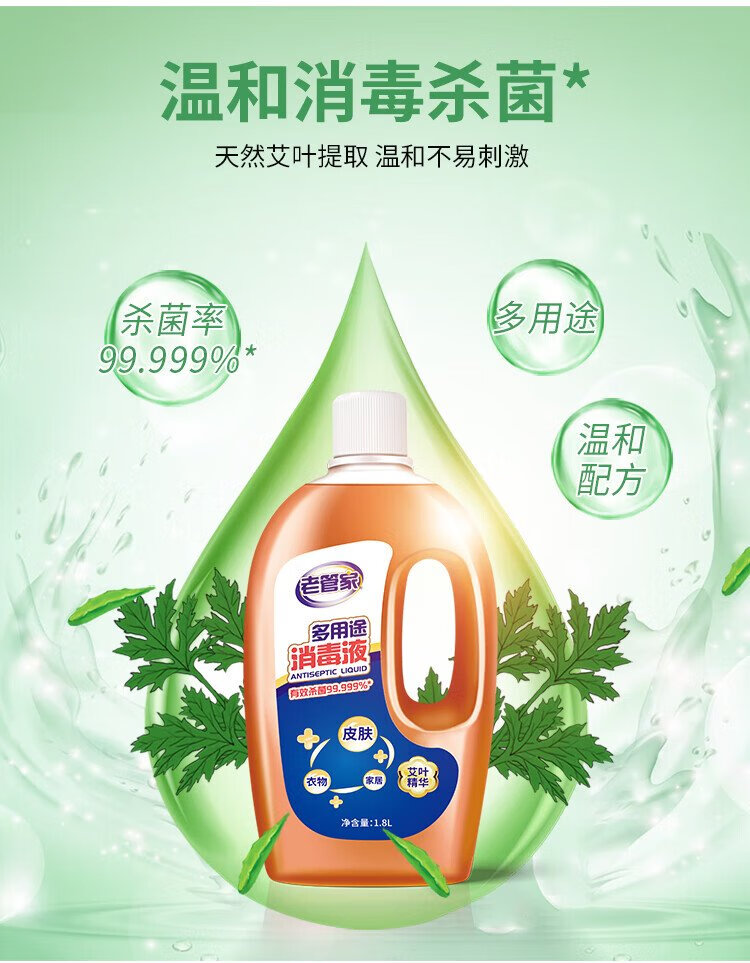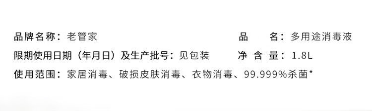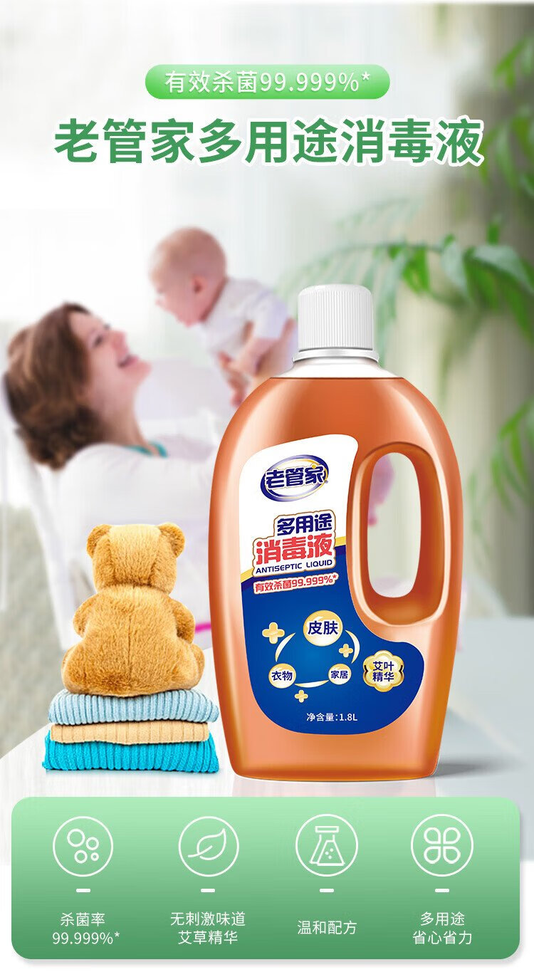 Lao Guanjia multi-purpose disinfectant 1.8L high concentration indoor household skin and clothing disinfectant sterilization liquid disinfectant water