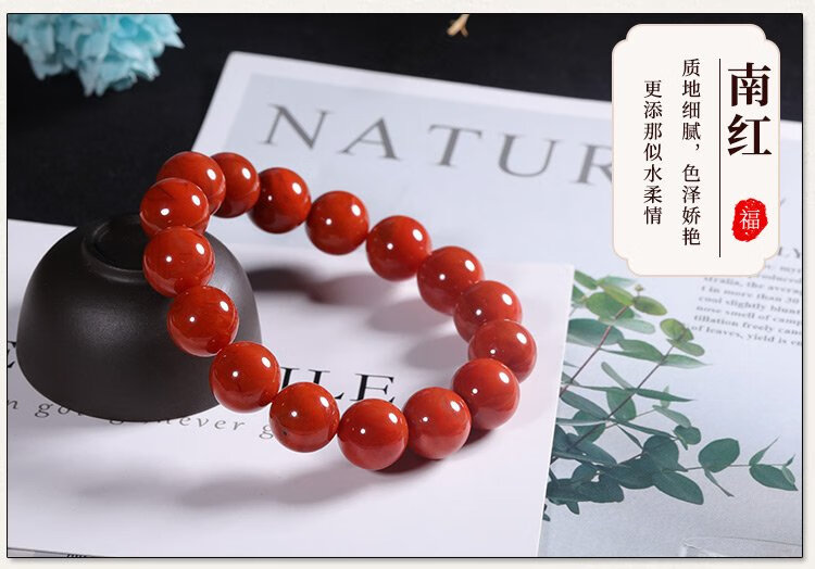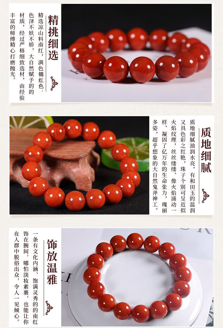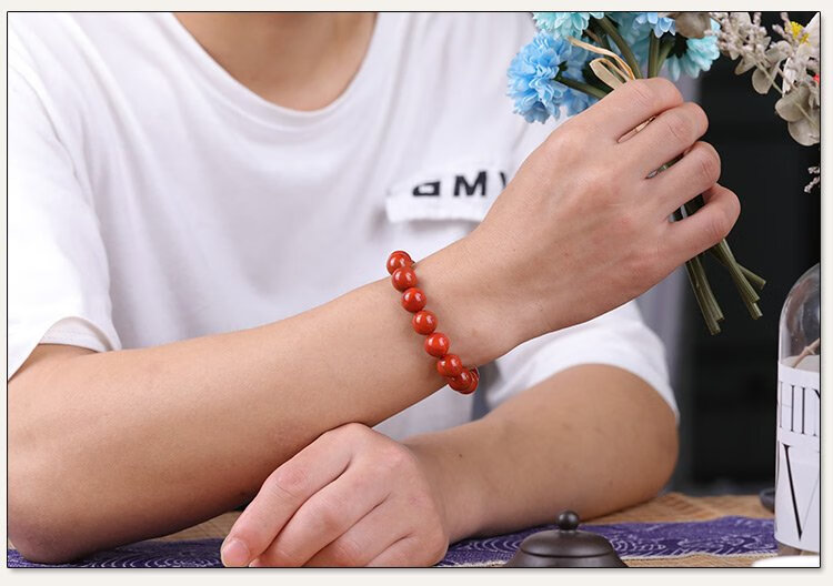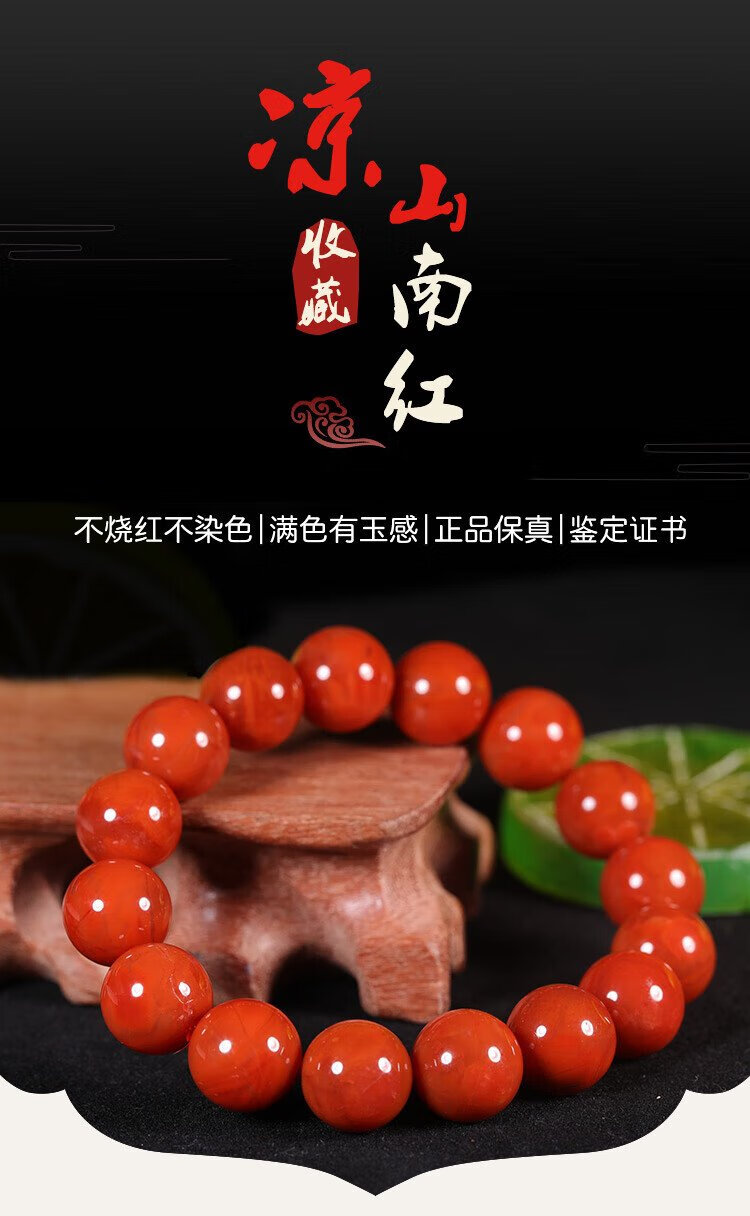 Shi Yue Jewelry Collection Grade 12-13mm Liangshan Southern Red Agate Bracelet Transfer Bead Bracelet for Men and Women Crystal Agate