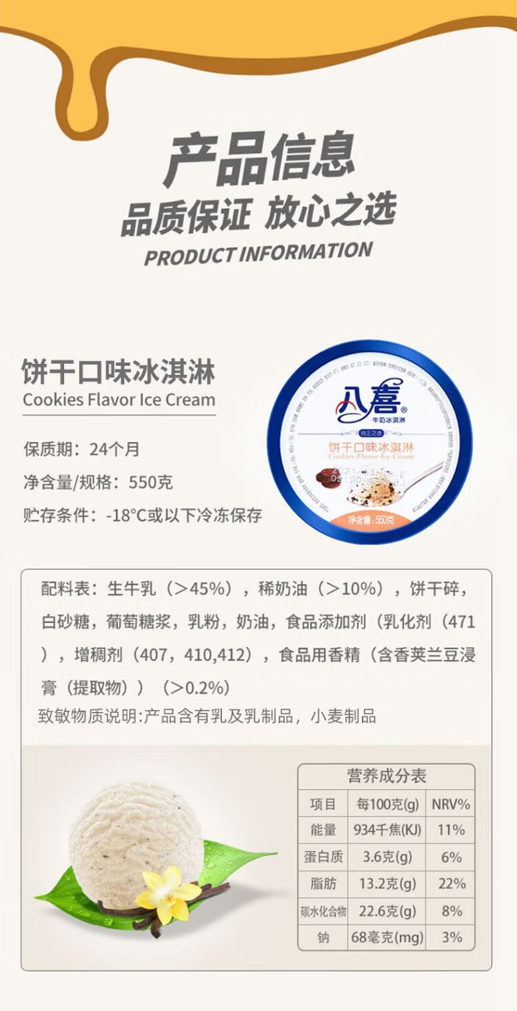 Baxi ice cream biscuit flavor 550g*1 barrel family size raw milk ice cream barrel