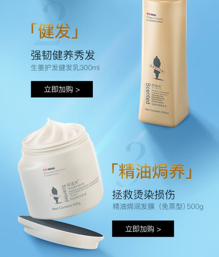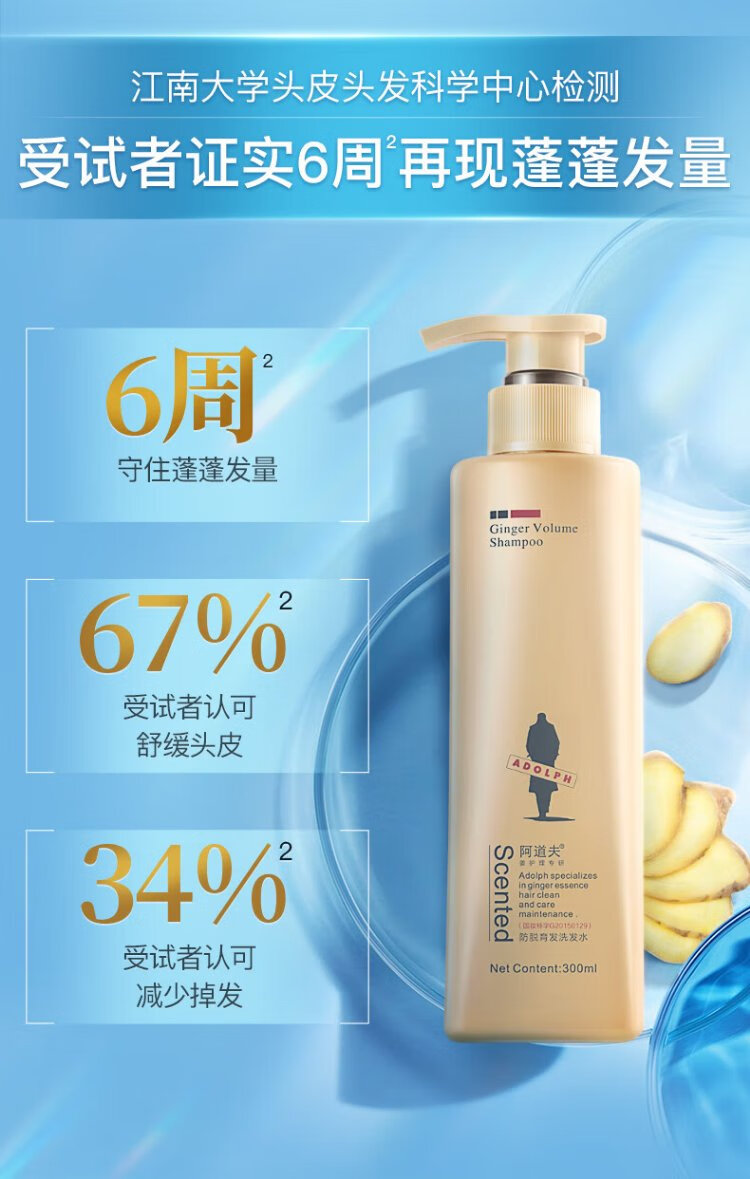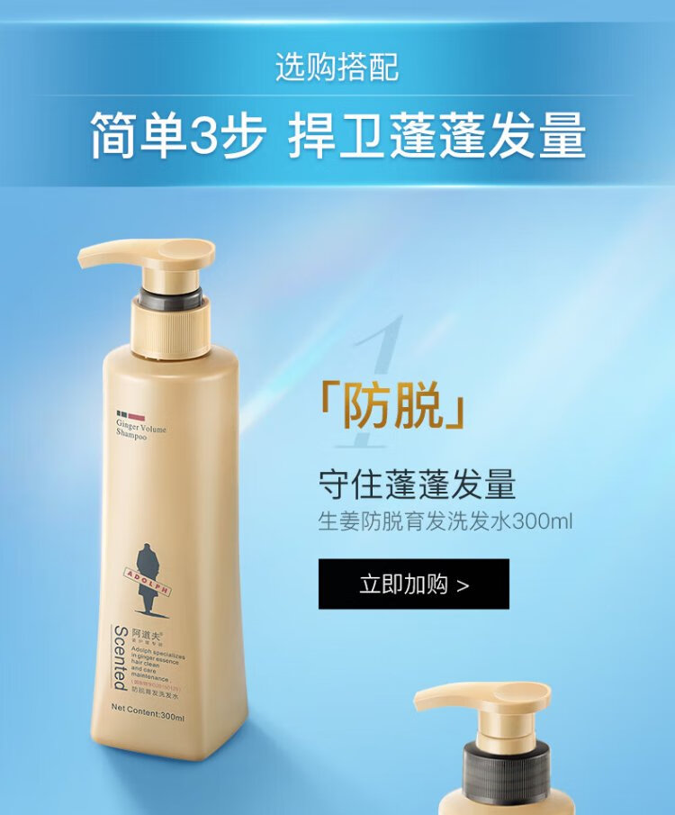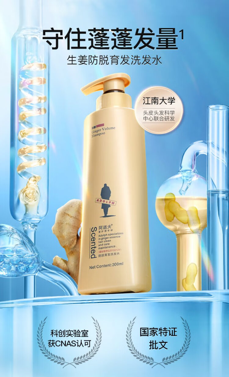 Adolf Ginger Anti-hair Loss Shampoo 300ml*2+Conditioner 300ml New Year's Care Set for Men and Women