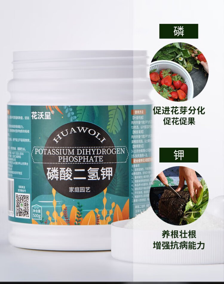 Huawoli potassium dihydrogen phosphate fertilizer 500g, potassium fertilizer to promote flowering and budding, fruit-preserving water-soluble compound fertilizer orchid foliar fertilizer