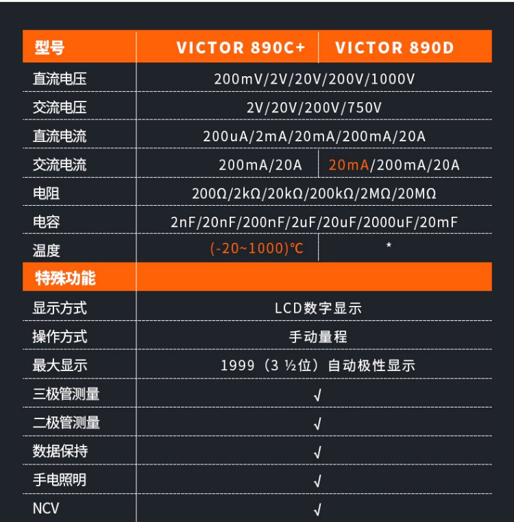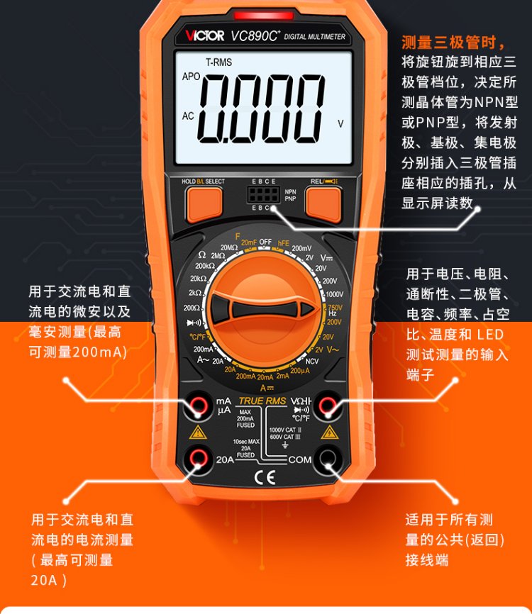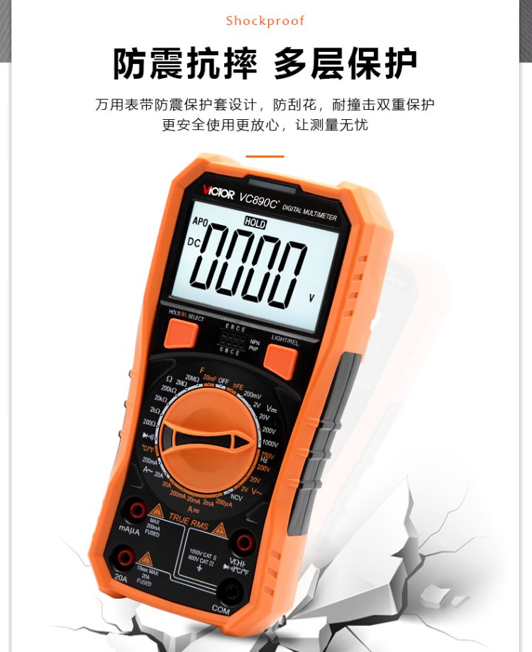 Victory Instrument (VICTOR) multimeter high-precision electrician special anti-burn digital multimeter smart home VC890C+PRO