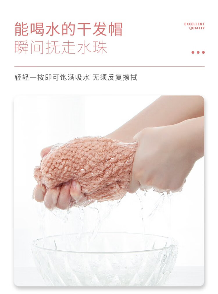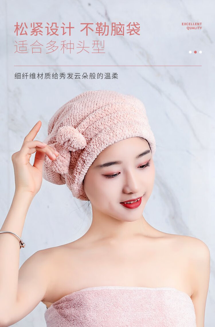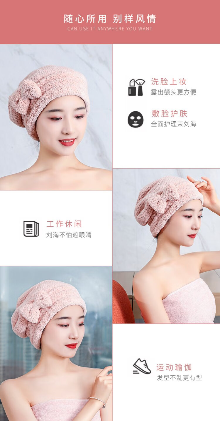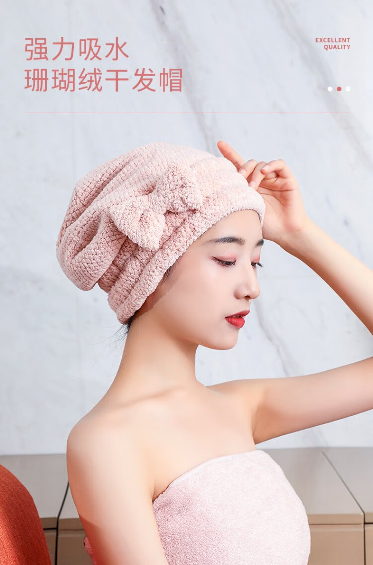 Jie Liya (Grace) hair drying cap, quick-drying hair drying towel, thickened, soft and highly absorbent, turban, women's shower cap, lotus root pink