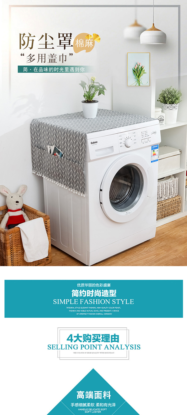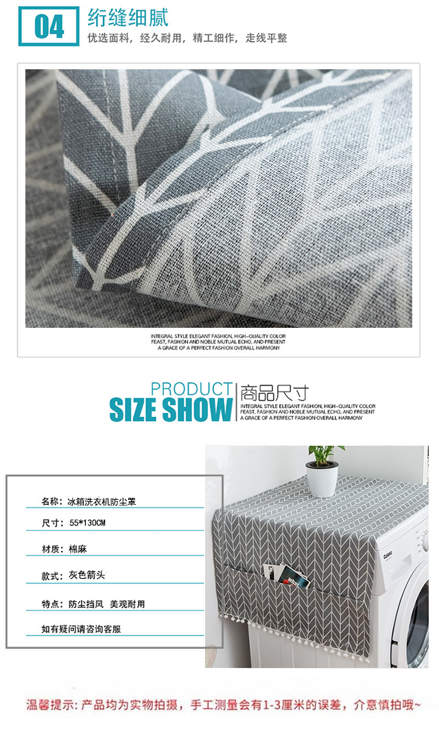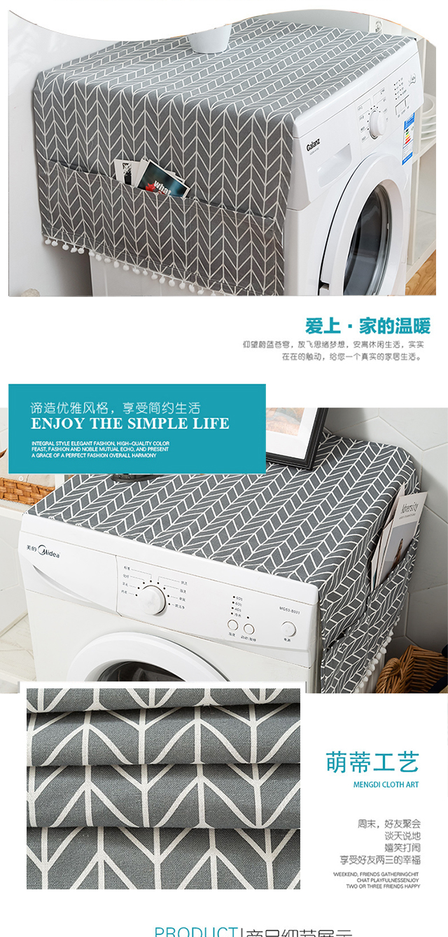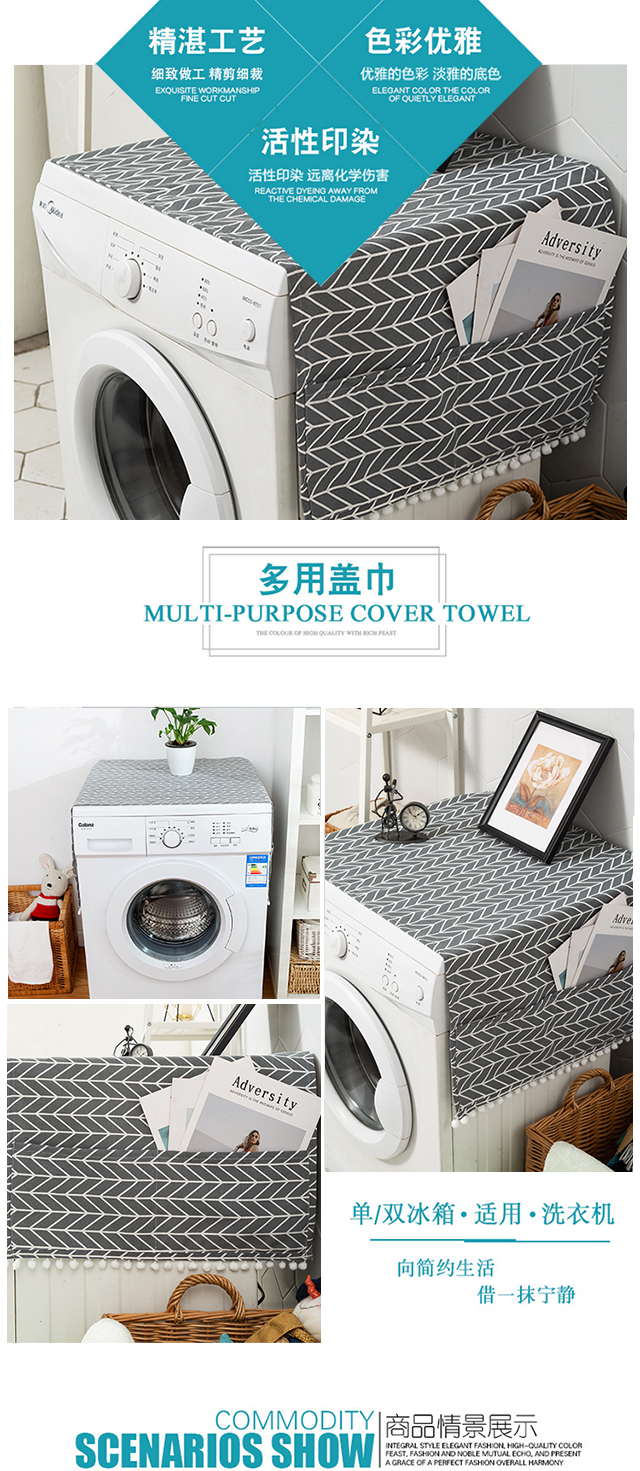 Ivy cotton and linen refrigerator dust cover top cover cloth washing machine dust cloth coffee table table cloth covering cloth 55*130 gray arrow