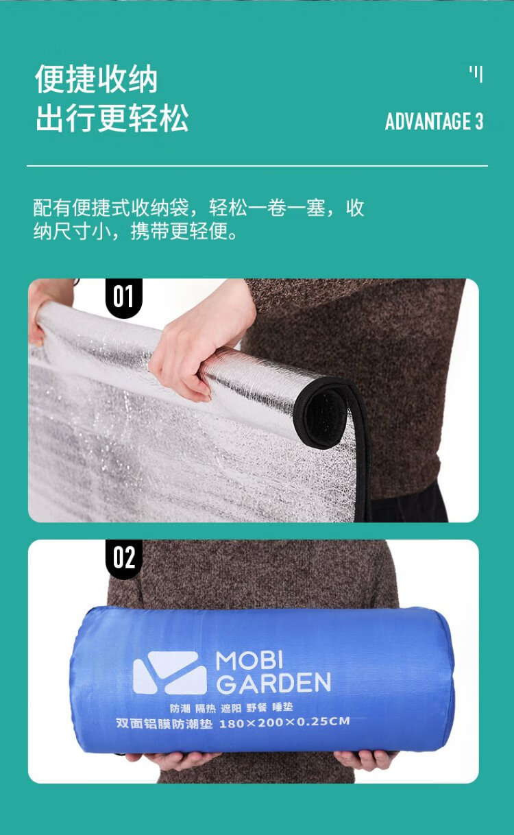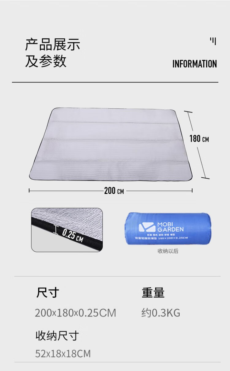 MOBIGARDEN Moisture-proof Mat Outdoor Camping Waterproof Portable Park Picnic Mat Double-sided Aluminum Film Mat NX20663008 Silver