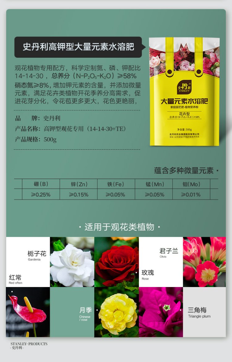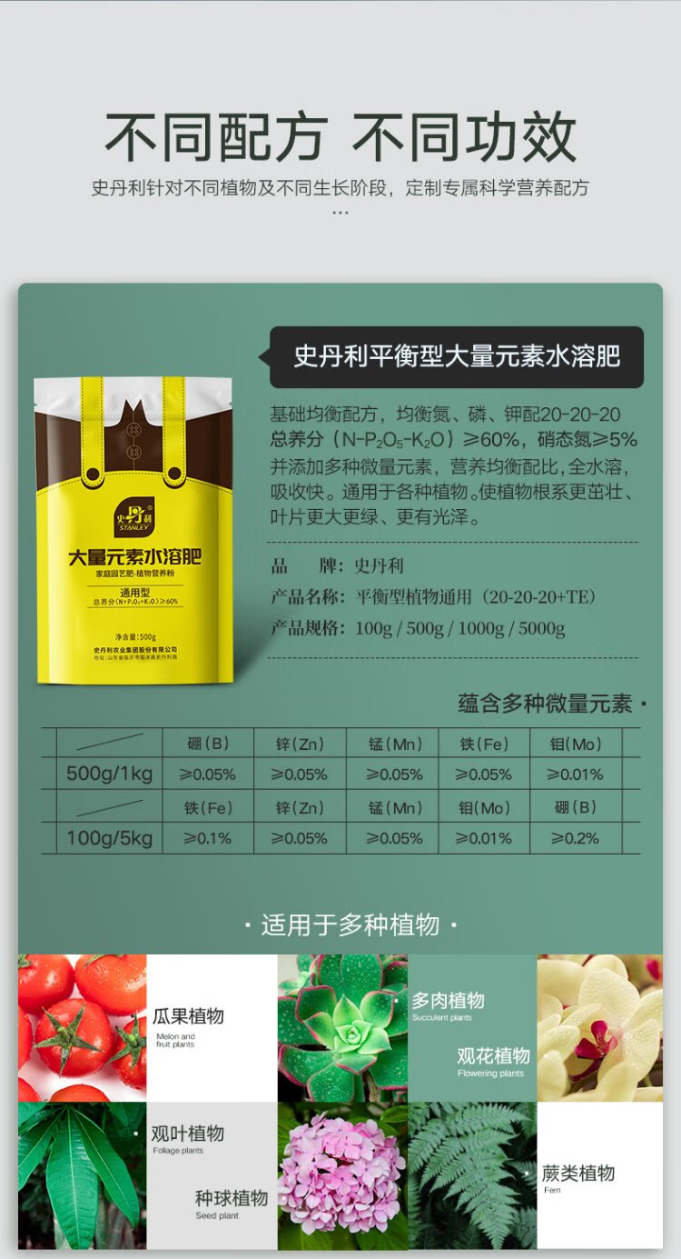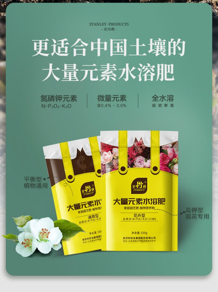 Stanley large element water-soluble fertilizer for flowers, high nitrogen, high phosphorus, high potassium nitrogen fertilizer, phosphate fertilizer and potassium fertilizer, general compound fertilizer 100g