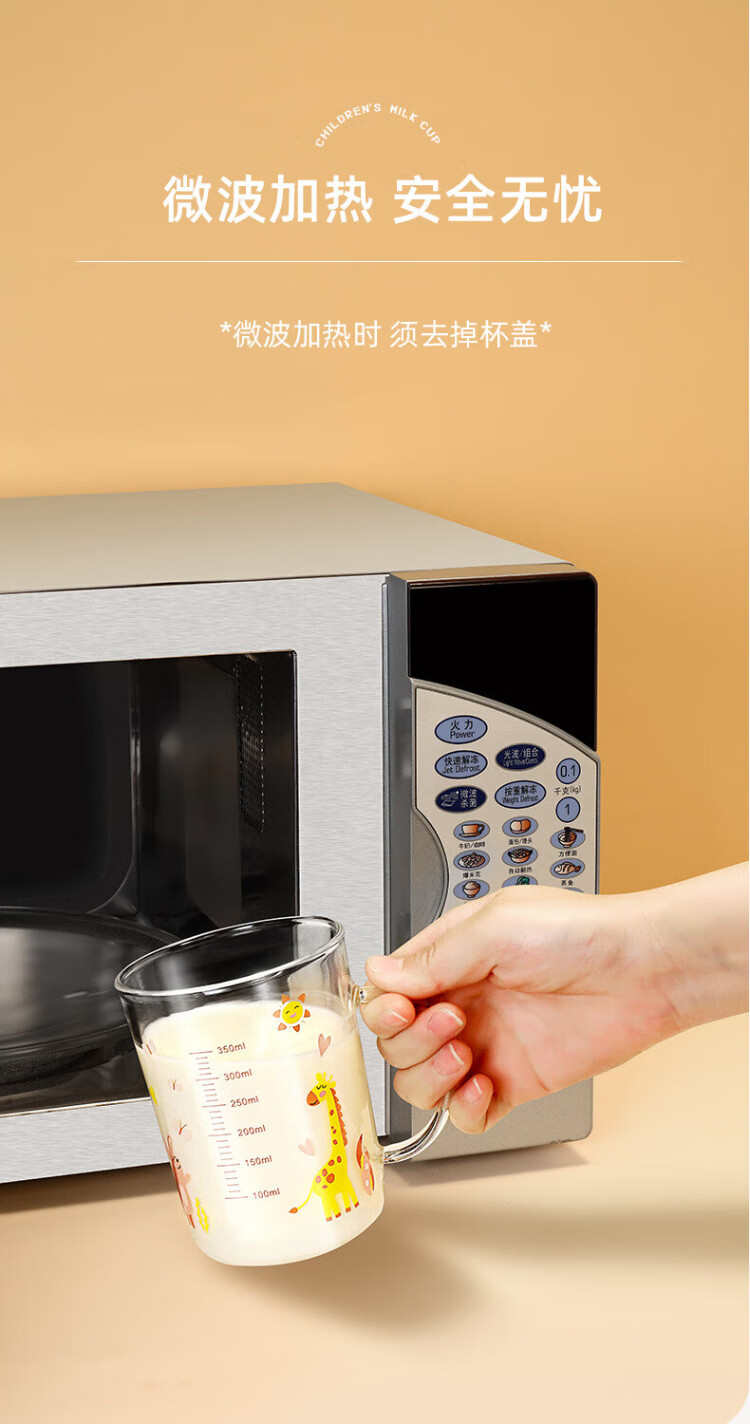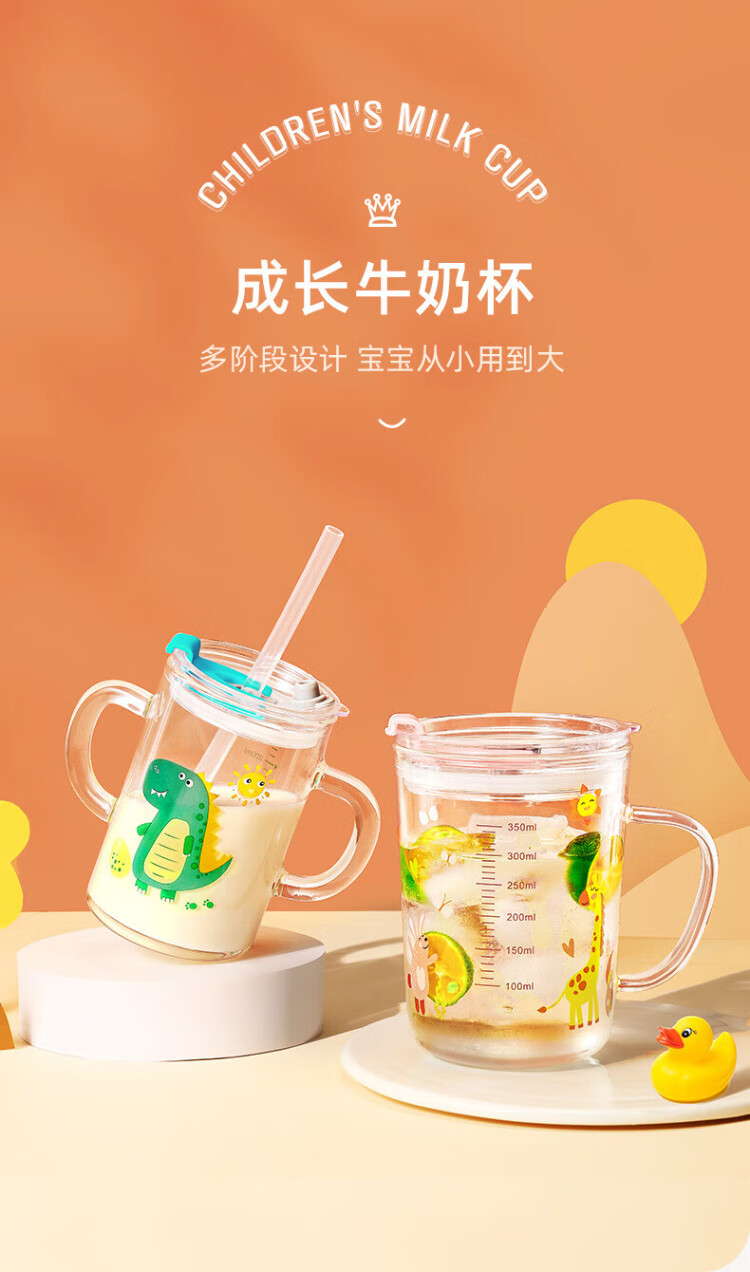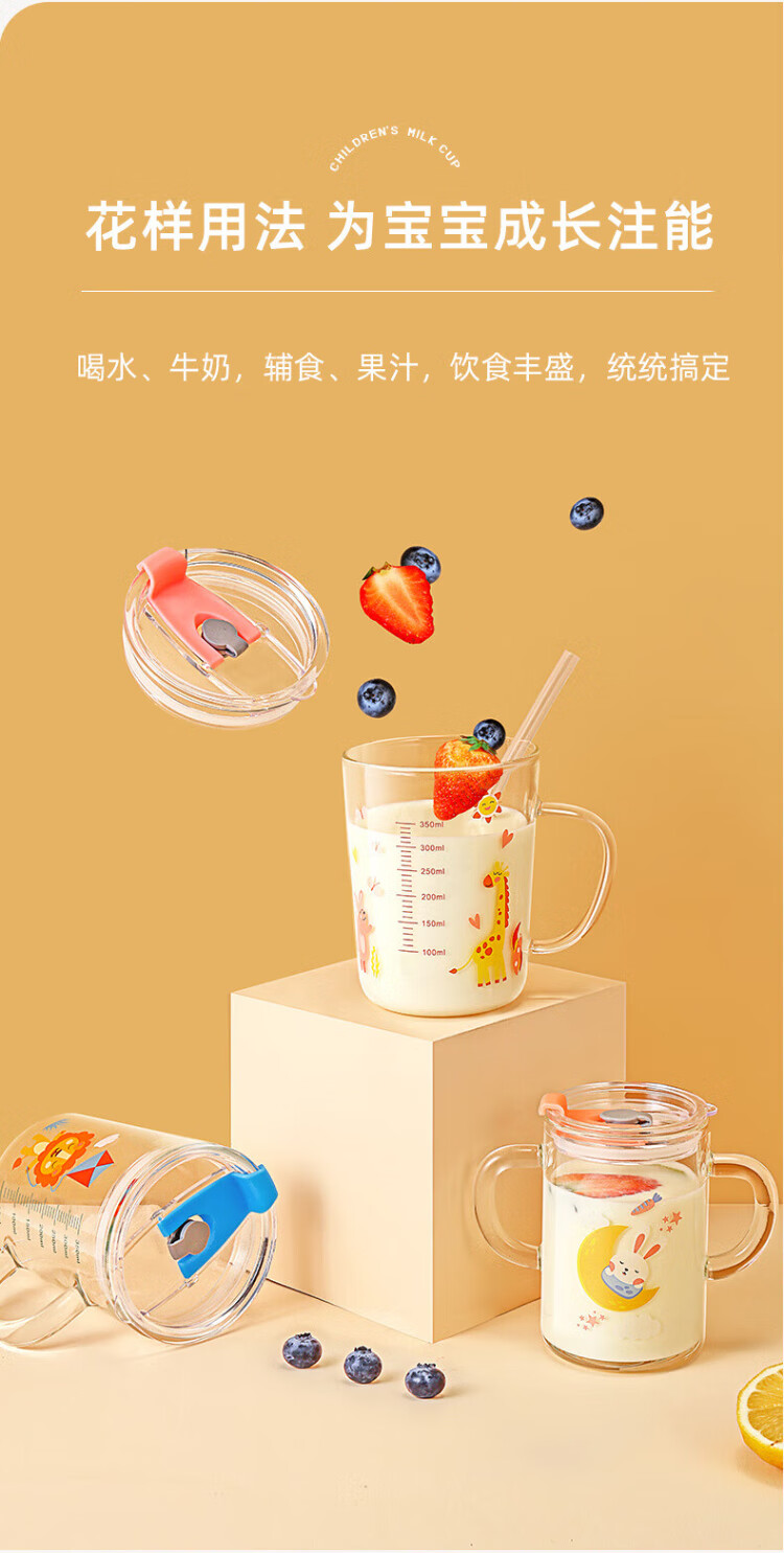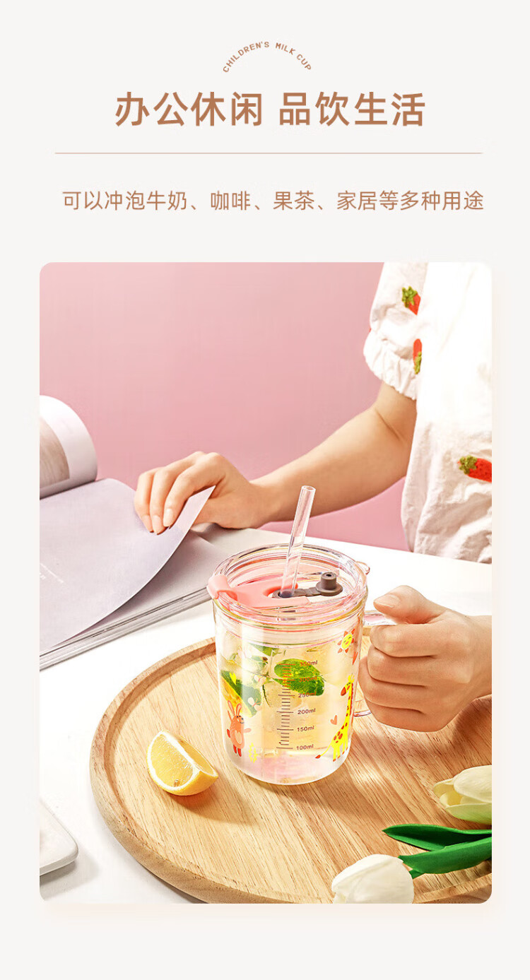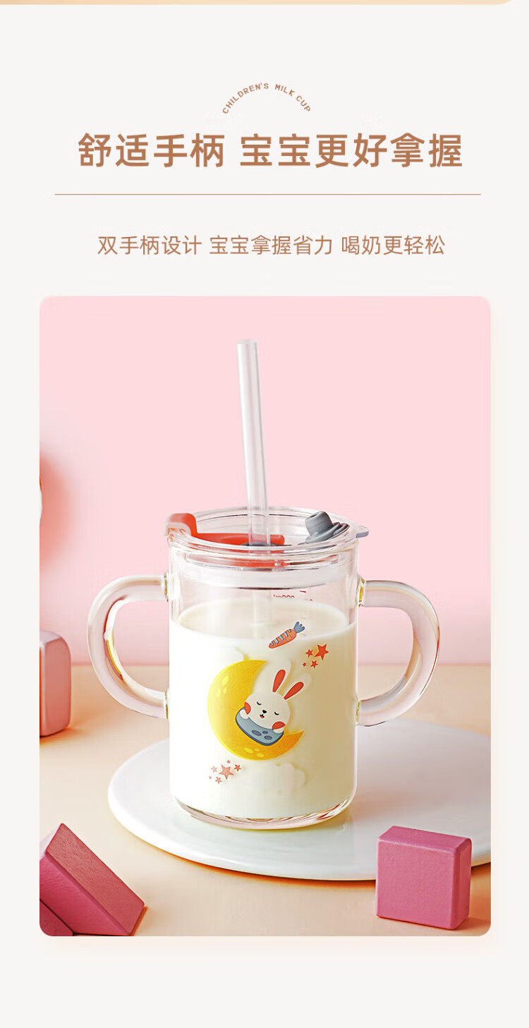 Fuguang glass household children's milk cup with scale heat-resistant straw water cup milk cup microwaveable