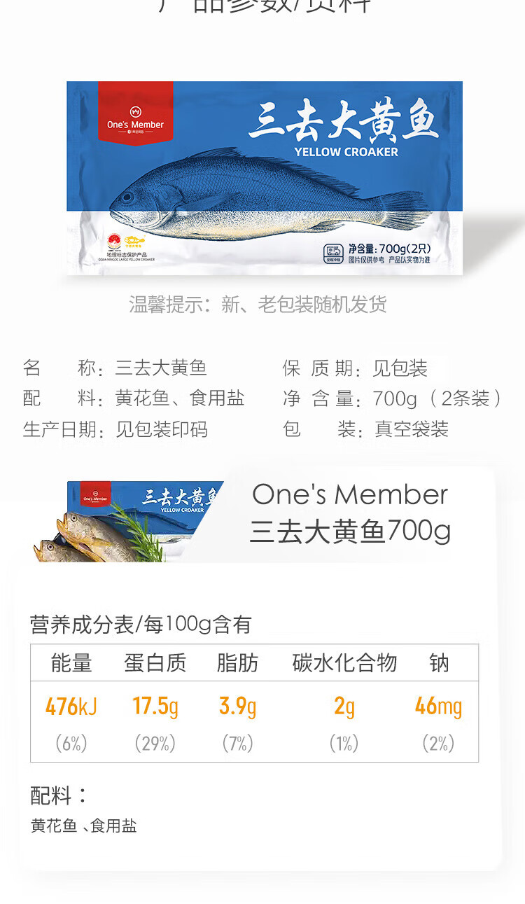 Member Store No. 1, Sam's Factory, Frozen Ningde Three-Degree Large Yellow Croaker, Yellow Croaker, Net Weight 700g/2 Pack, Aquatic Fish