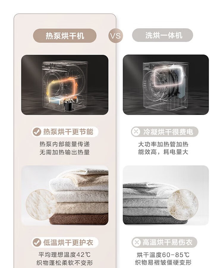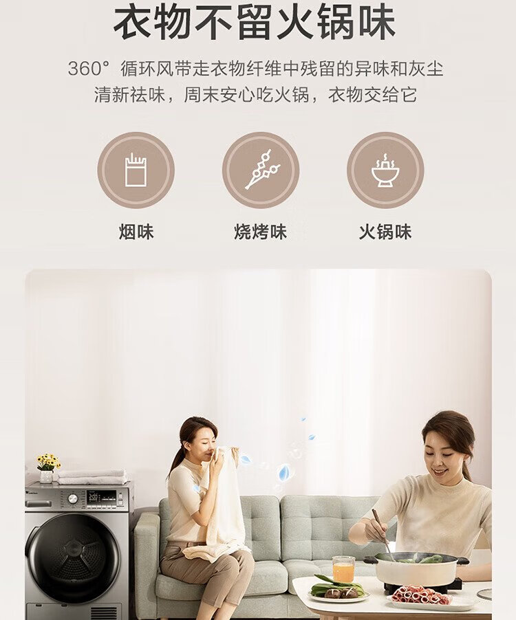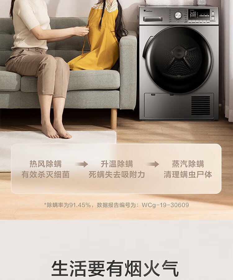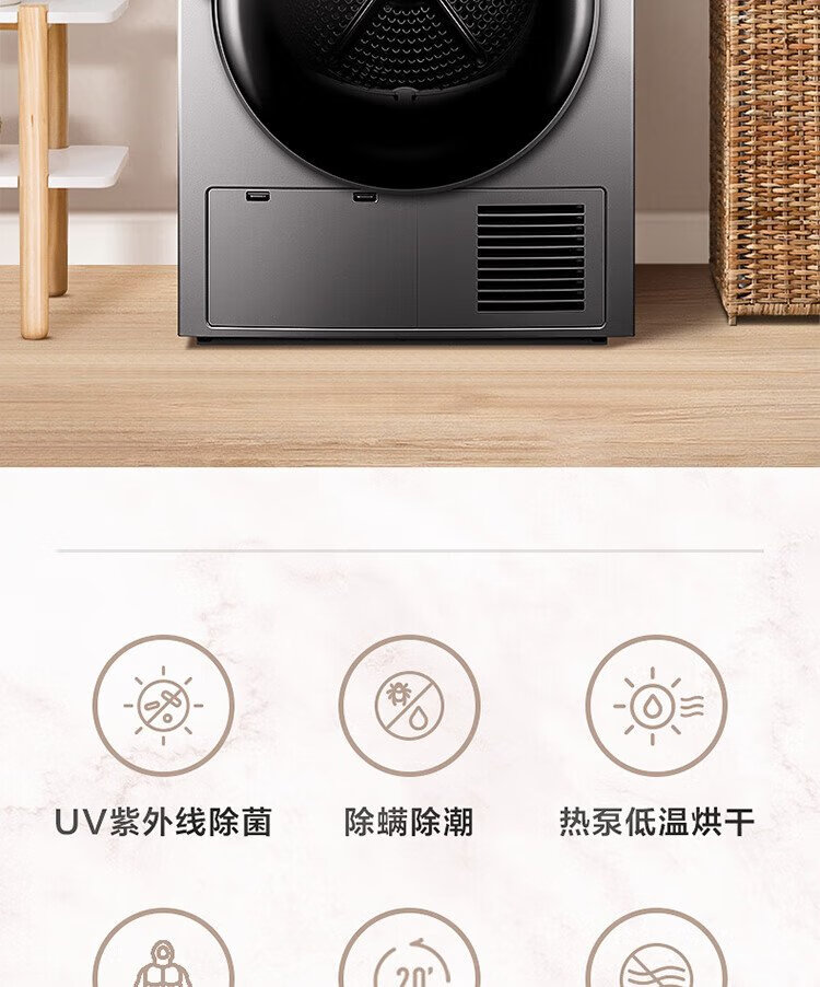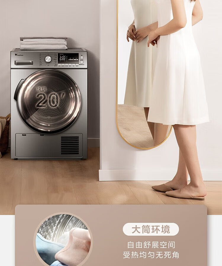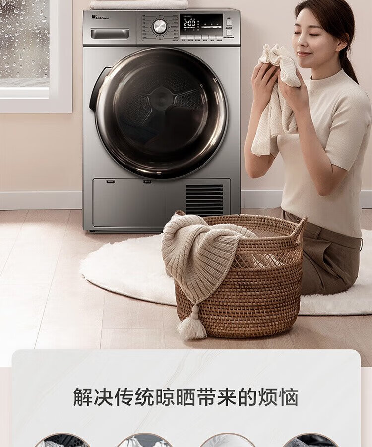 小天鹅(LittleSwan)10KG热泵烘干机节能 祛味除螨除菌 家用干衣机 AI正反转回南天烘干机超薄TH100-HL02T